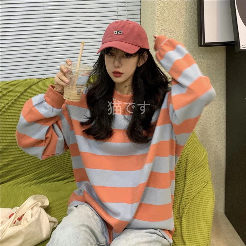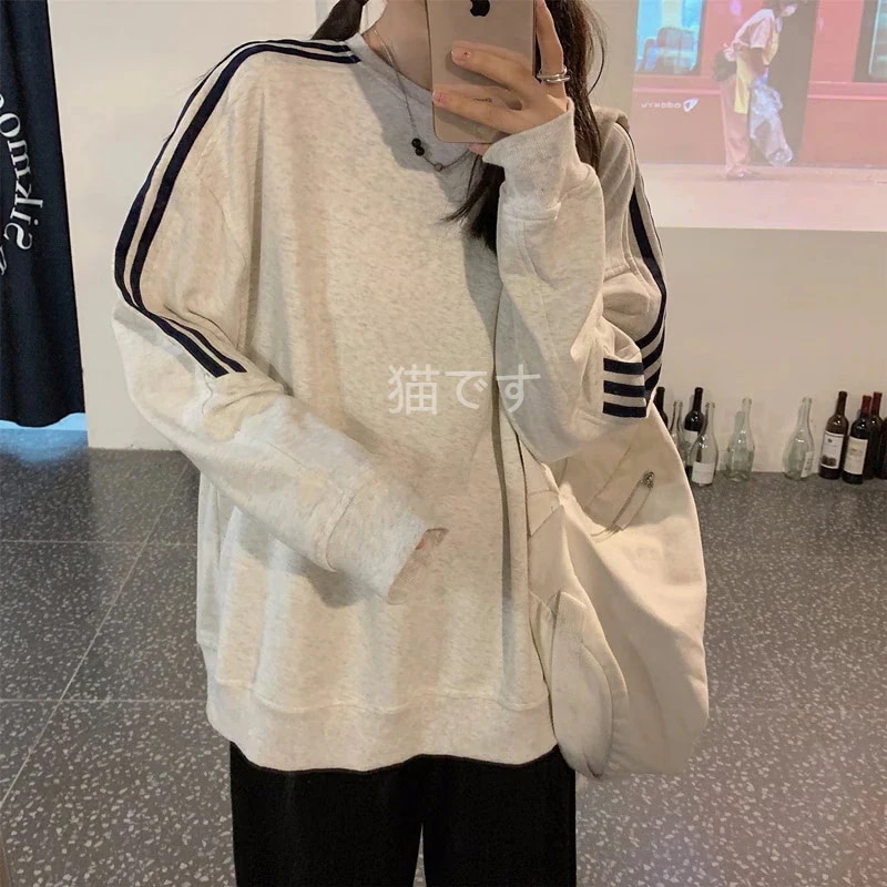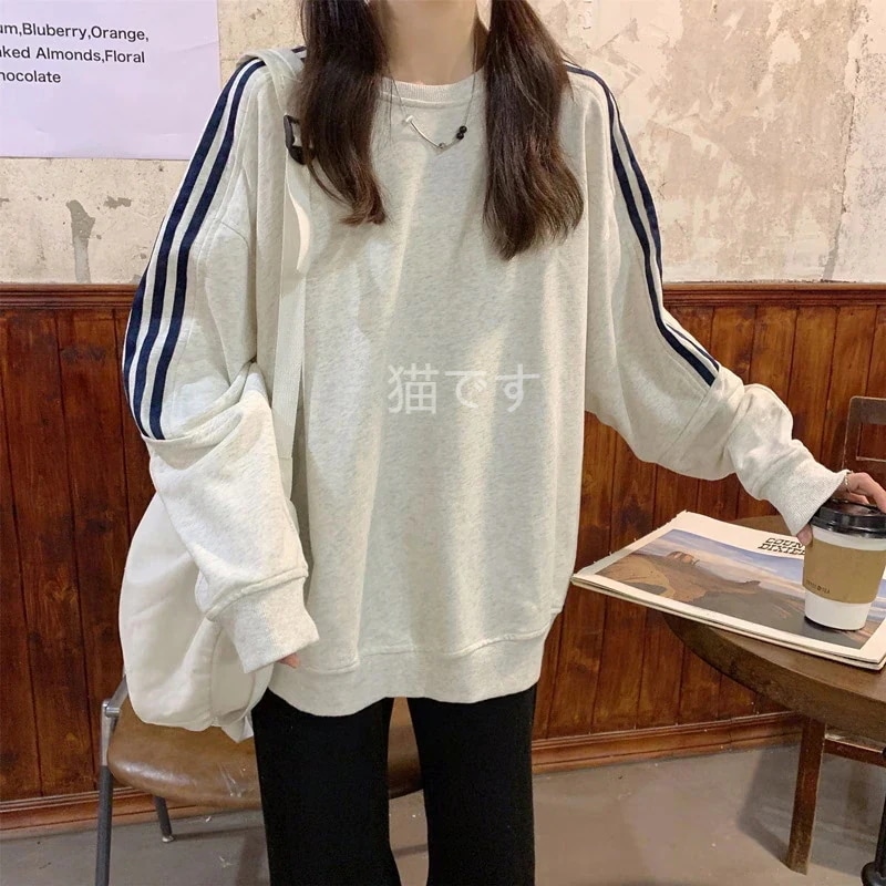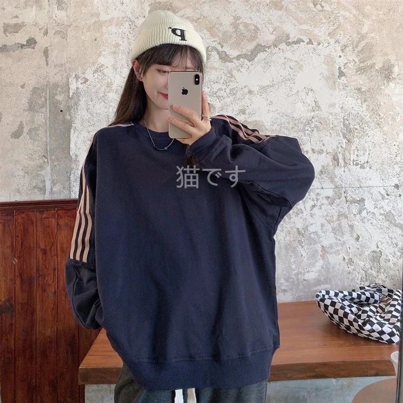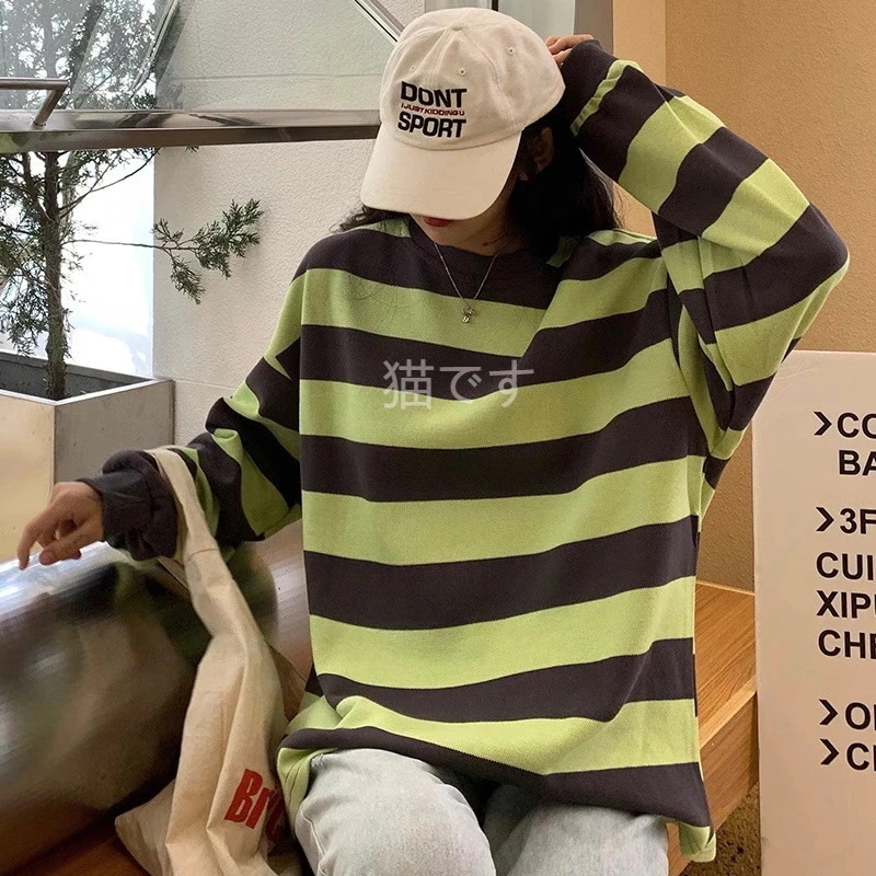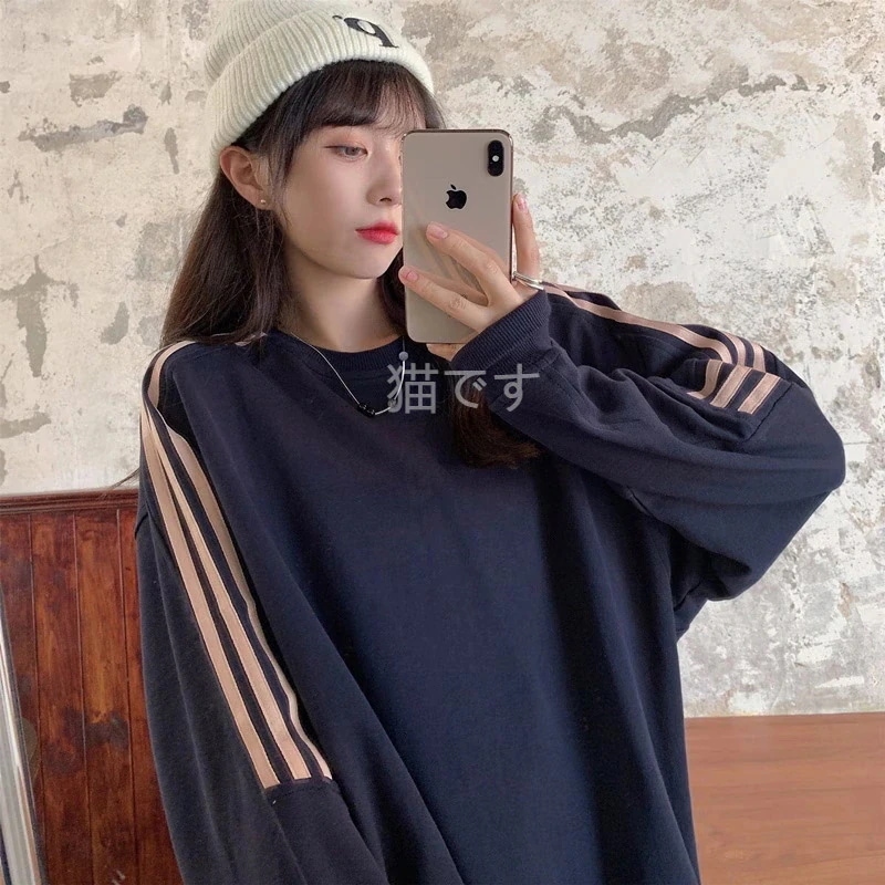 長袖tシャツ スウェット パーカー レディース トップス プルオーバー トレーナー 韓国ファッション tシャツレディース ストライプ オーバー サイズ パーカー