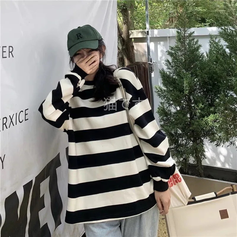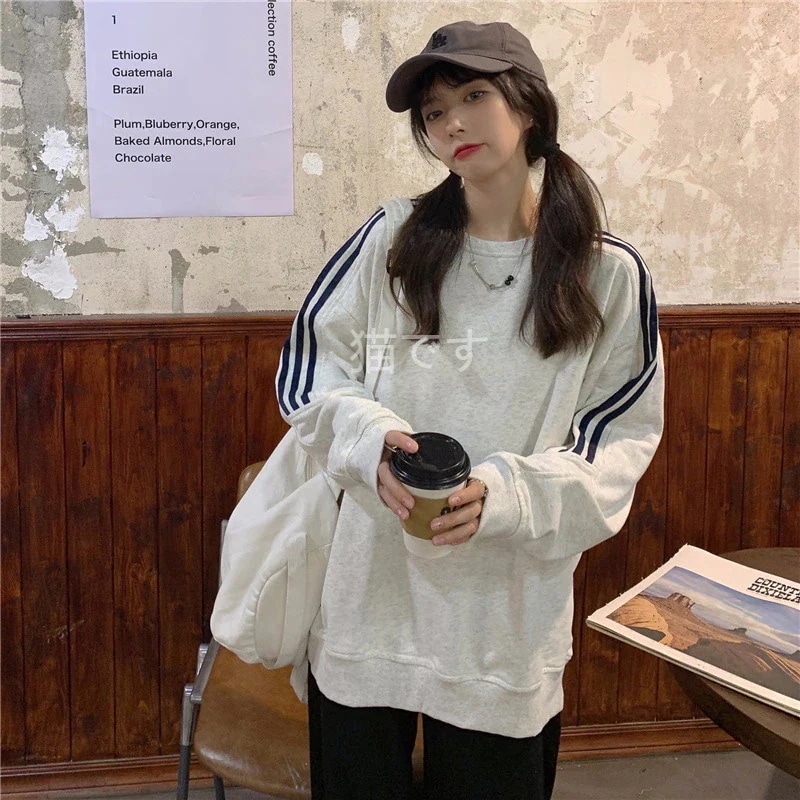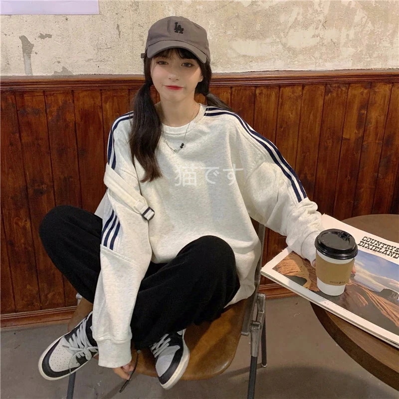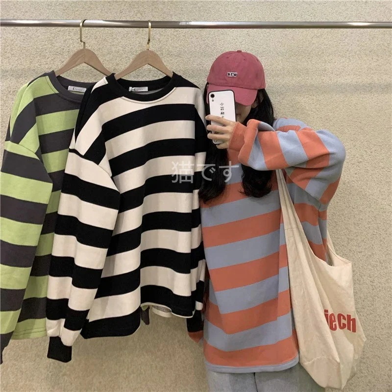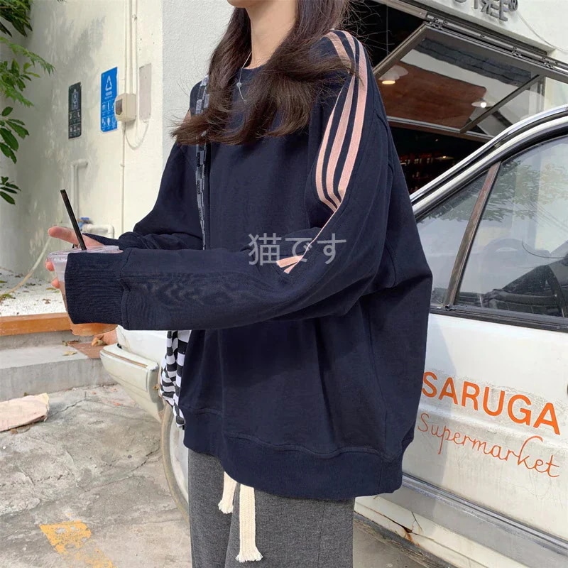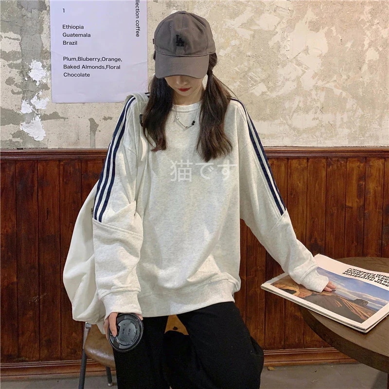 長袖tシャツ スウェット パーカー レディース トップス プルオーバー トレーナー 韓国ファッション tシャツレディース ストライプ オーバー サイズ パーカー