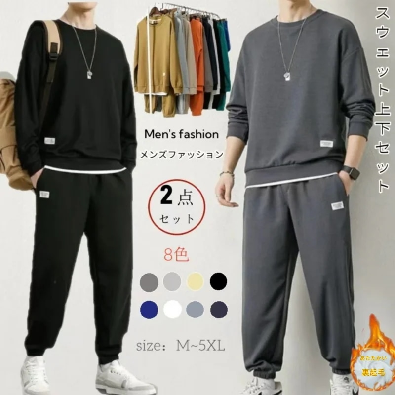追加裏起毛セットアップメンズファッショントレーナー2点セット スウェット上下セットビッグサイズゆったり快適上下スーツ