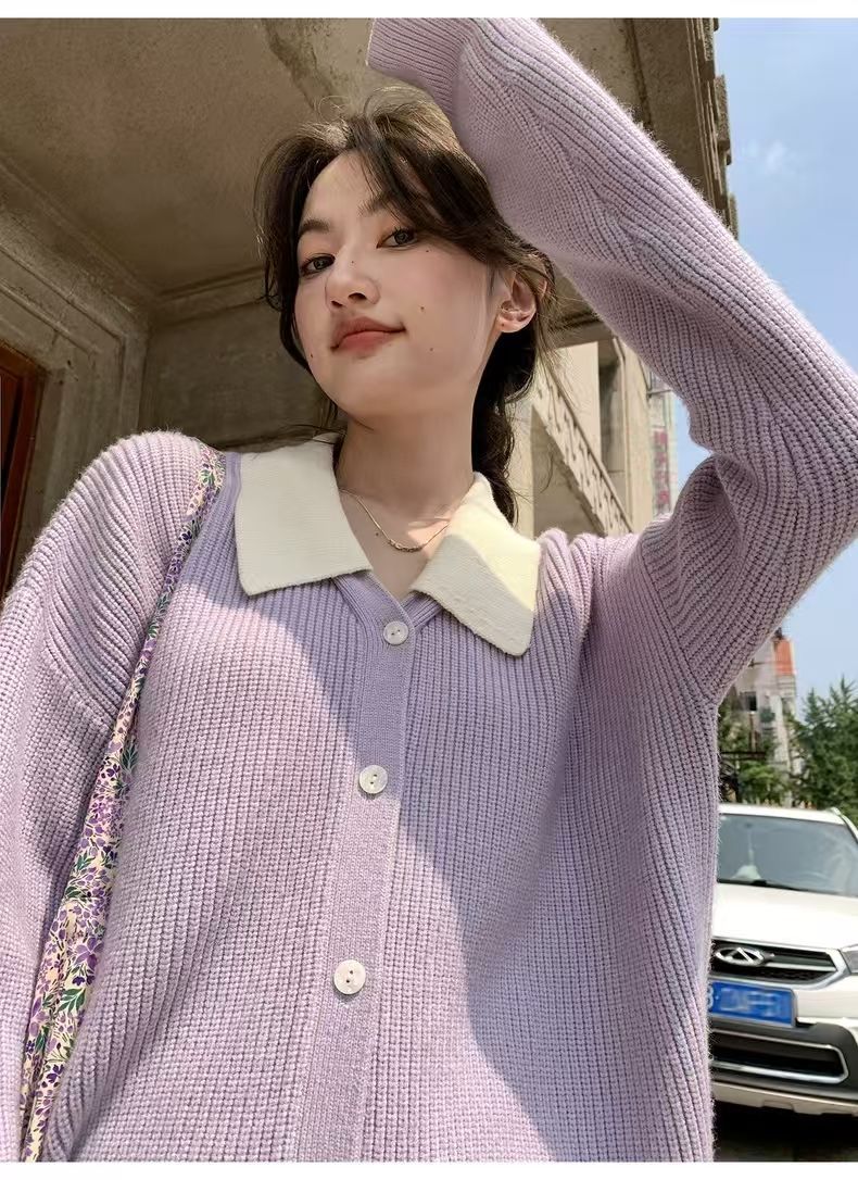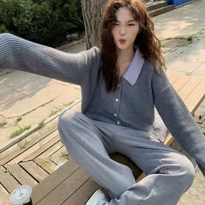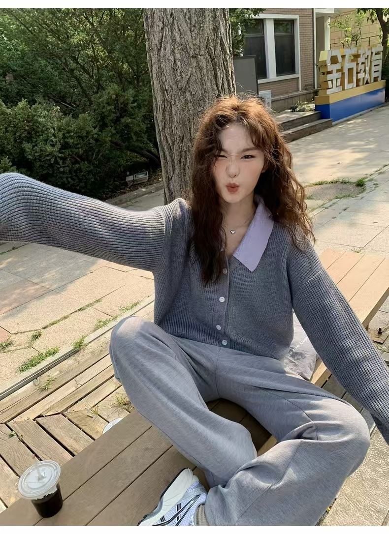 秋服の偽のセーター2枚とネット赤揚げ街の減齢ニットカーディガンを着ている ニット