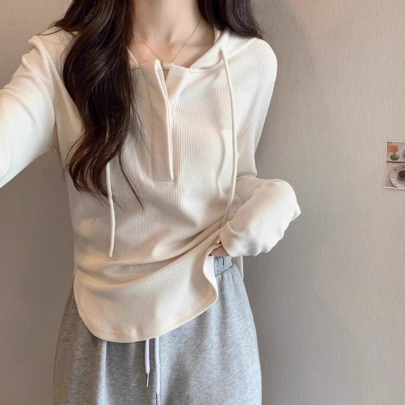 純欲ギャルタイトTシャツ女性長袖秋冬新作連帽正肩すぼめ腰やせタイツアウタートップス Tシャツ カットソー