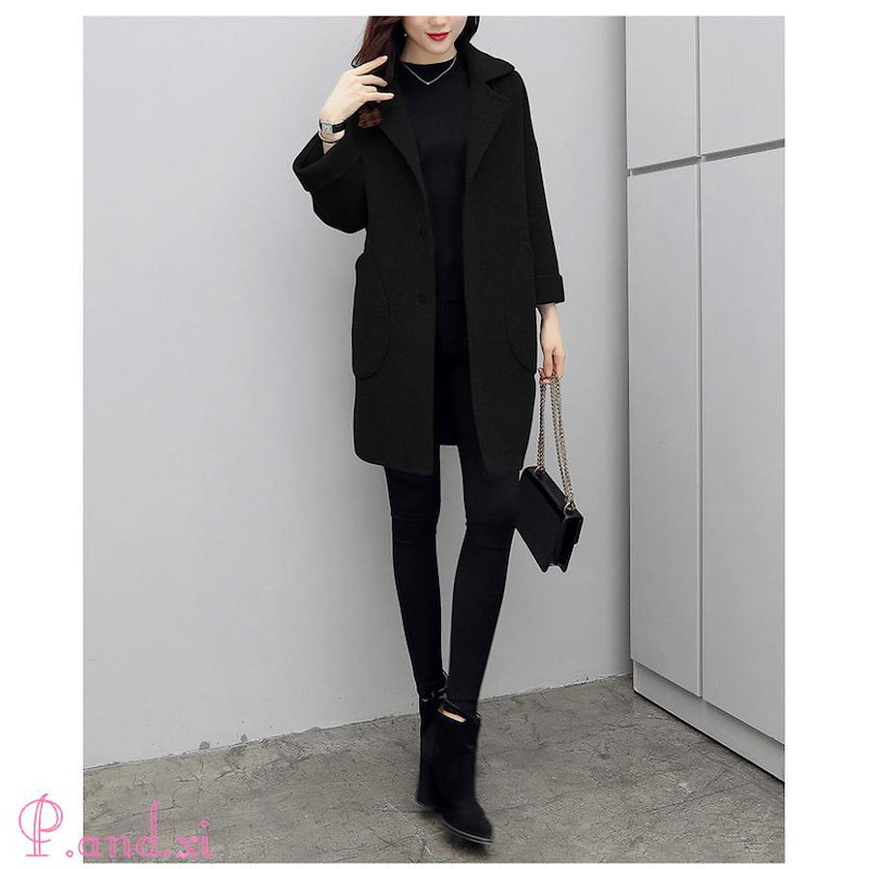 チェスターコート レディース 秋冬 40代 チェスターコート ミディアム丈 黒 ラシャコート 厚手 チェスターコート