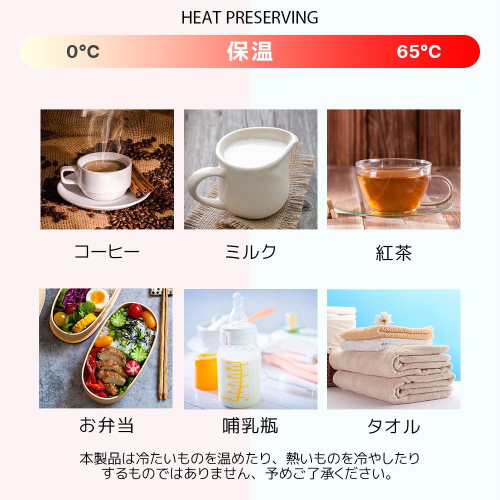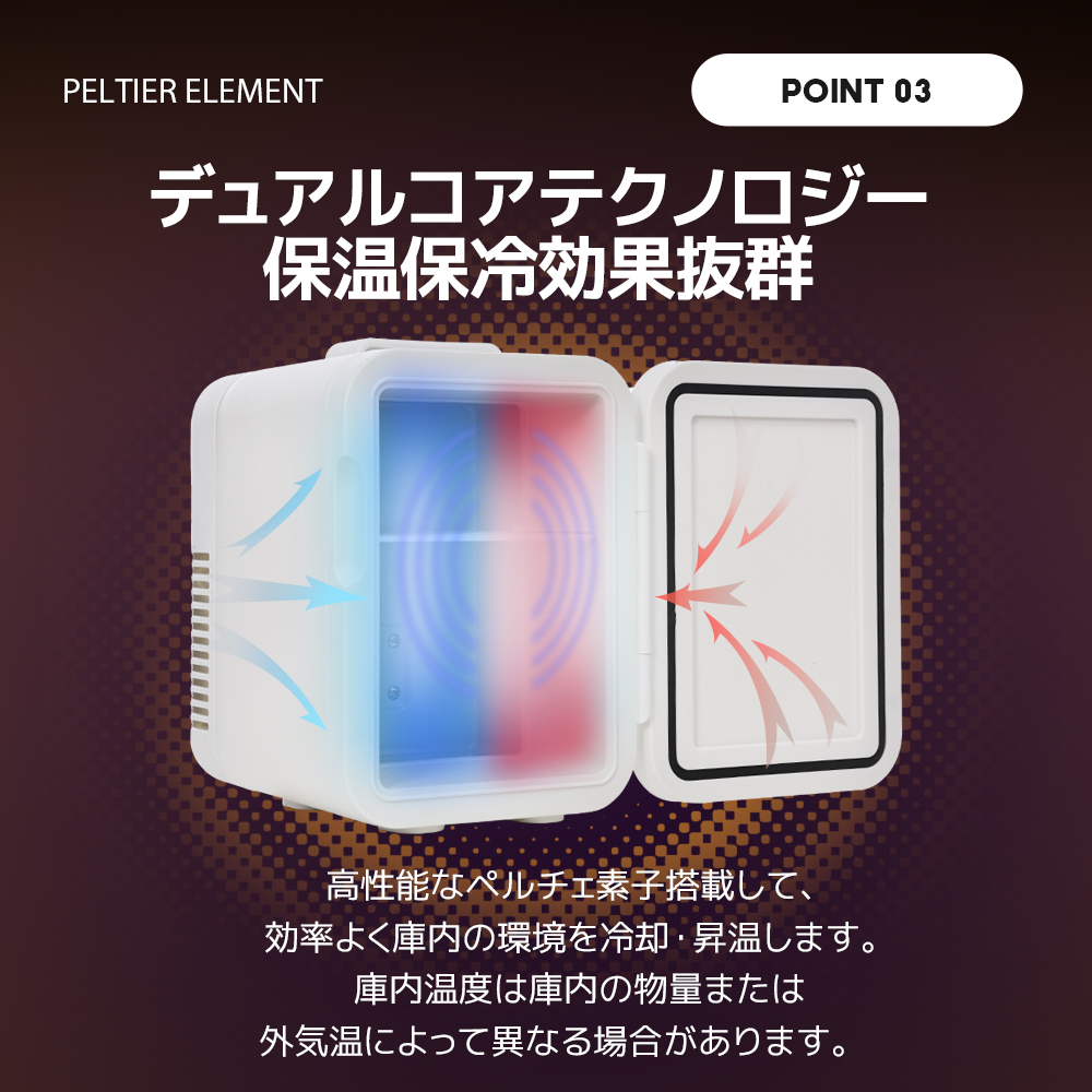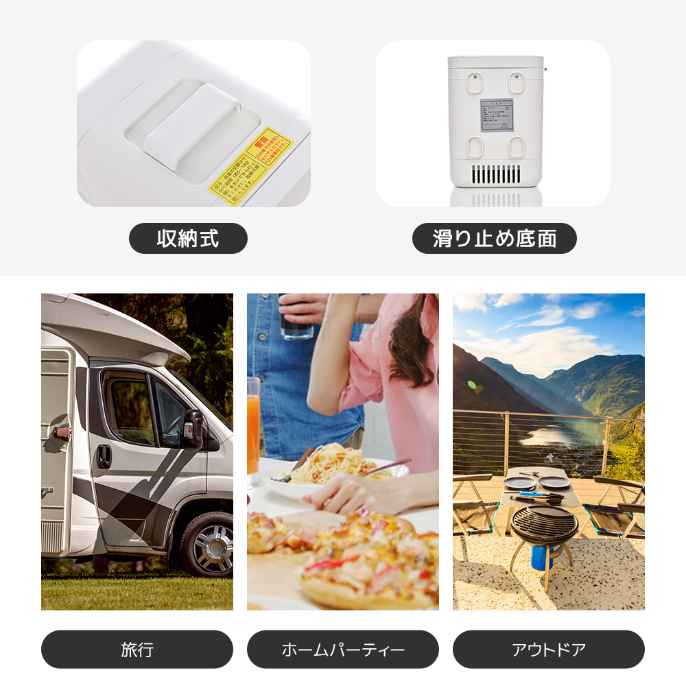 冷蔵飲料や果物などの食料品はもちろん、ビタミンやスキンケアを冷蔵したり、牛乳や母乳・お弁当などの温めにも役立ちます。