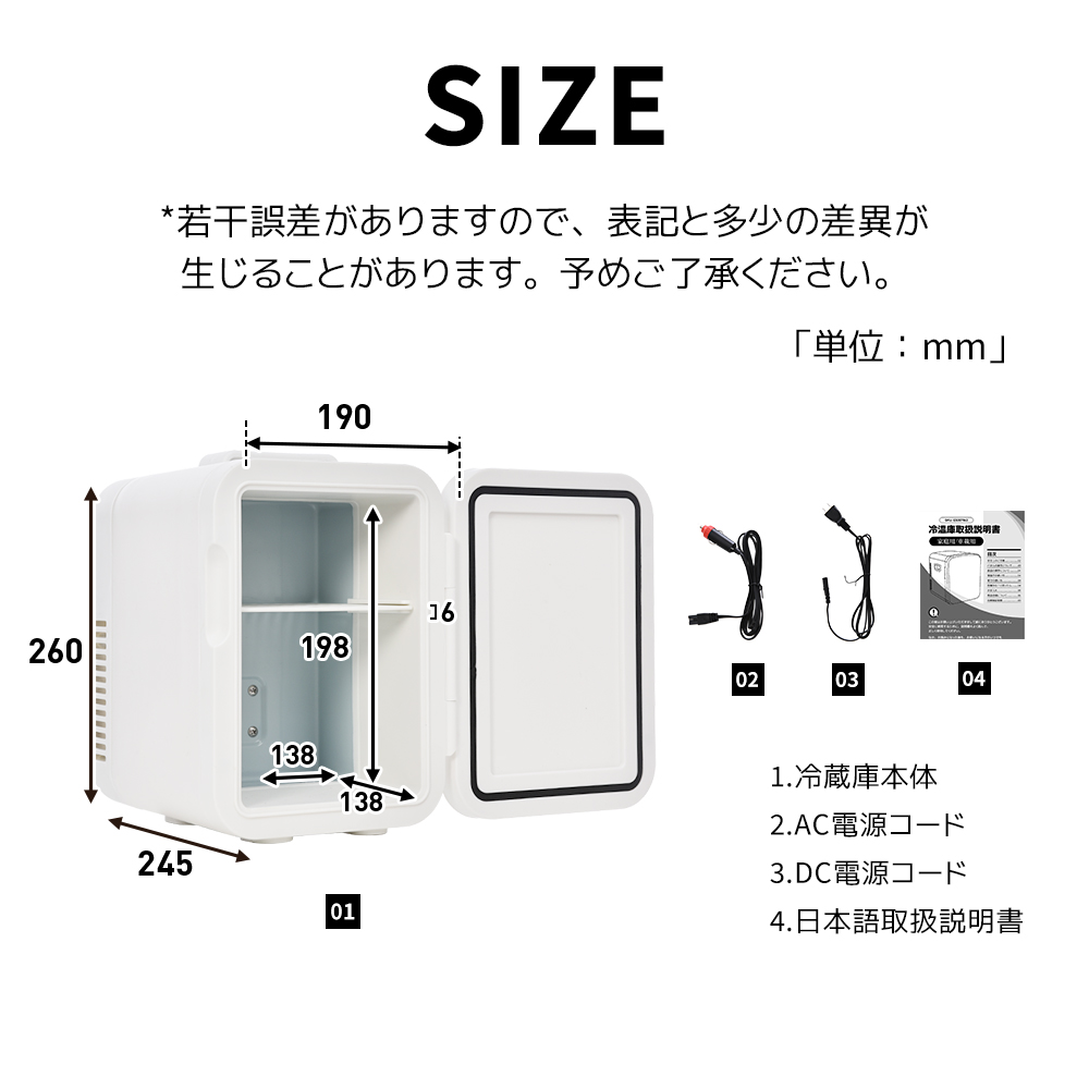 ミニ冷蔵庫 冷温庫 4L 小型 ポータブル 保冷温庫 コンパクト 保冷 保温 AC DC 2電源式 車載 部屋用 温冷庫 保冷庫 保温庫 4リットル ポータブル冷蔵庫 車載冷蔵庫
