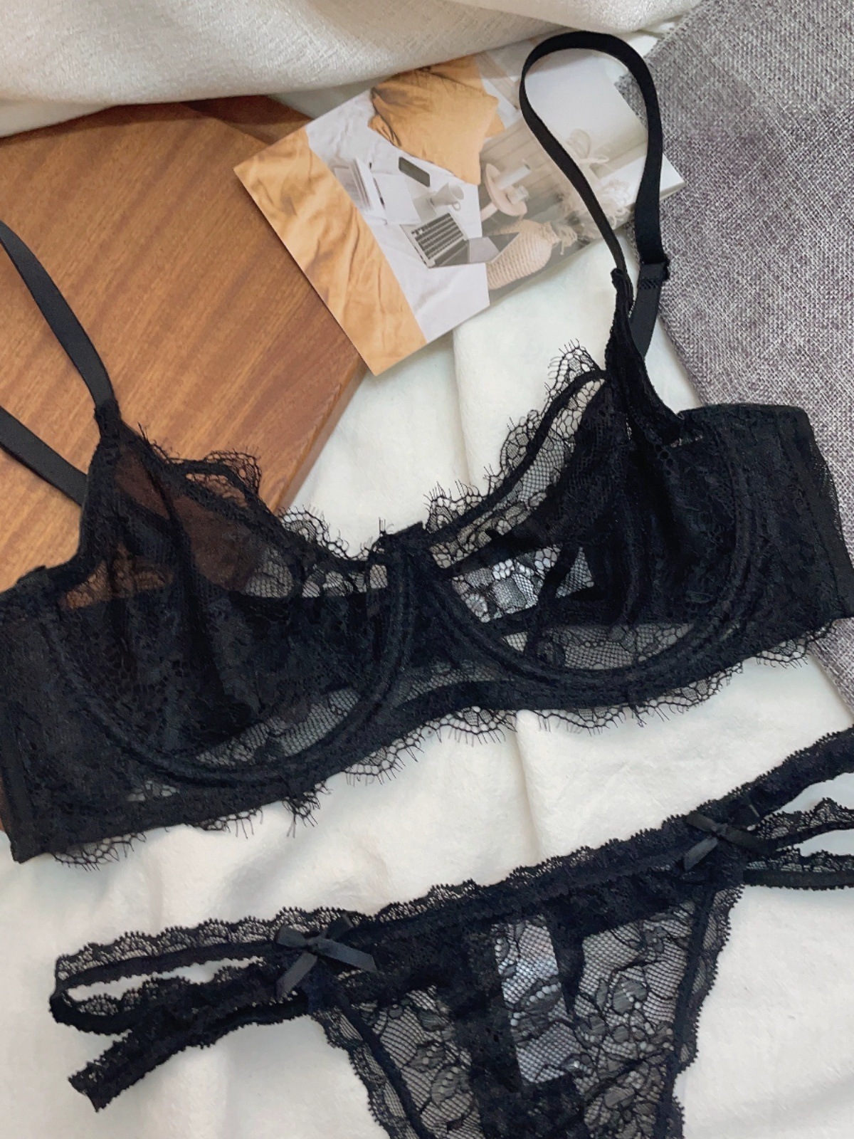セクシー極薄黒レース下着純欲ブラ薄透かしブラセット 一瞬で引き締まる 補正下着 シームレスブラ メガ割 可愛いセット下着 新調したい ナイトブラ 人気ブラジャー
