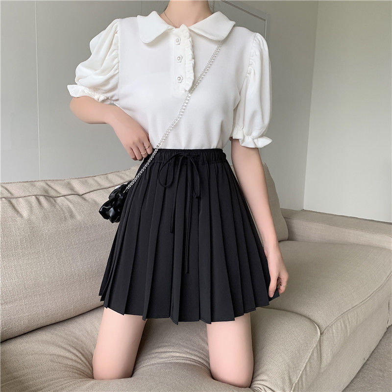 フレアスカ-ト ウエストをゆるめたプリーツスカートポンポンスカート 着痩せ 百掛け 韓国ファッション ロングスカート メガ割 マキシスカート