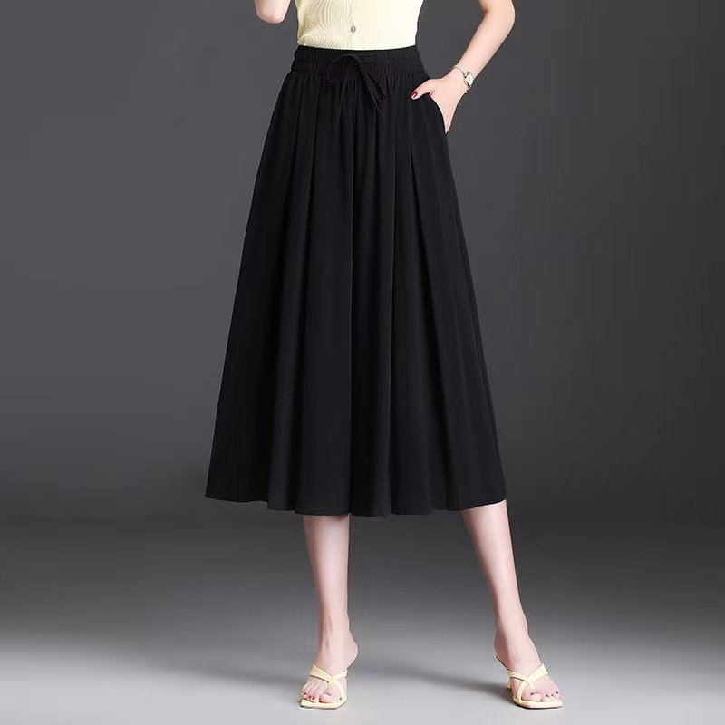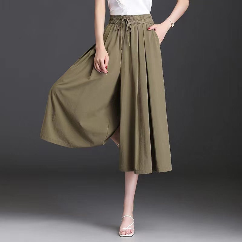 七分丈ガウチョパンツ冷感 レディースキュロットスカーチョ膝丈 ワイドパンツ 大きいサイズ ボトム体型カバー ハイウエスト ゴムフレアパンツゆったり チノパンツ薄手シャリ感楽チン脚長 大人 カジュアルお