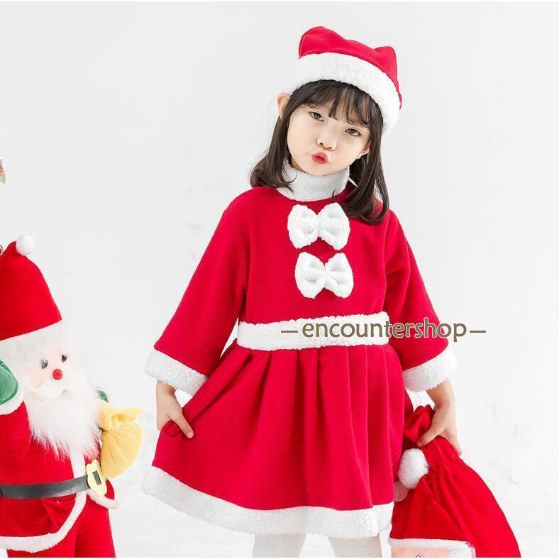 サンタ服 女の子 キッズ サンタコスプレ サンタクロース クリスマス衣装 2点セット ワンピース u0026amp 帽子 パーティー 自社生産