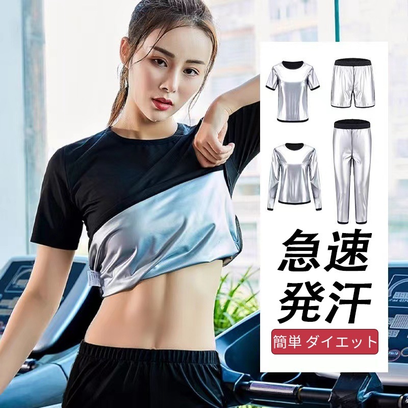 サウナスーツ レディース ダイエットウェア 発汗 サウナ レディース フィットネスウェア トレーニング ダイエット ウェア ジムウェア 長袖 半袖 上下セット ダイエット サウナパンツ 大きいサイズ