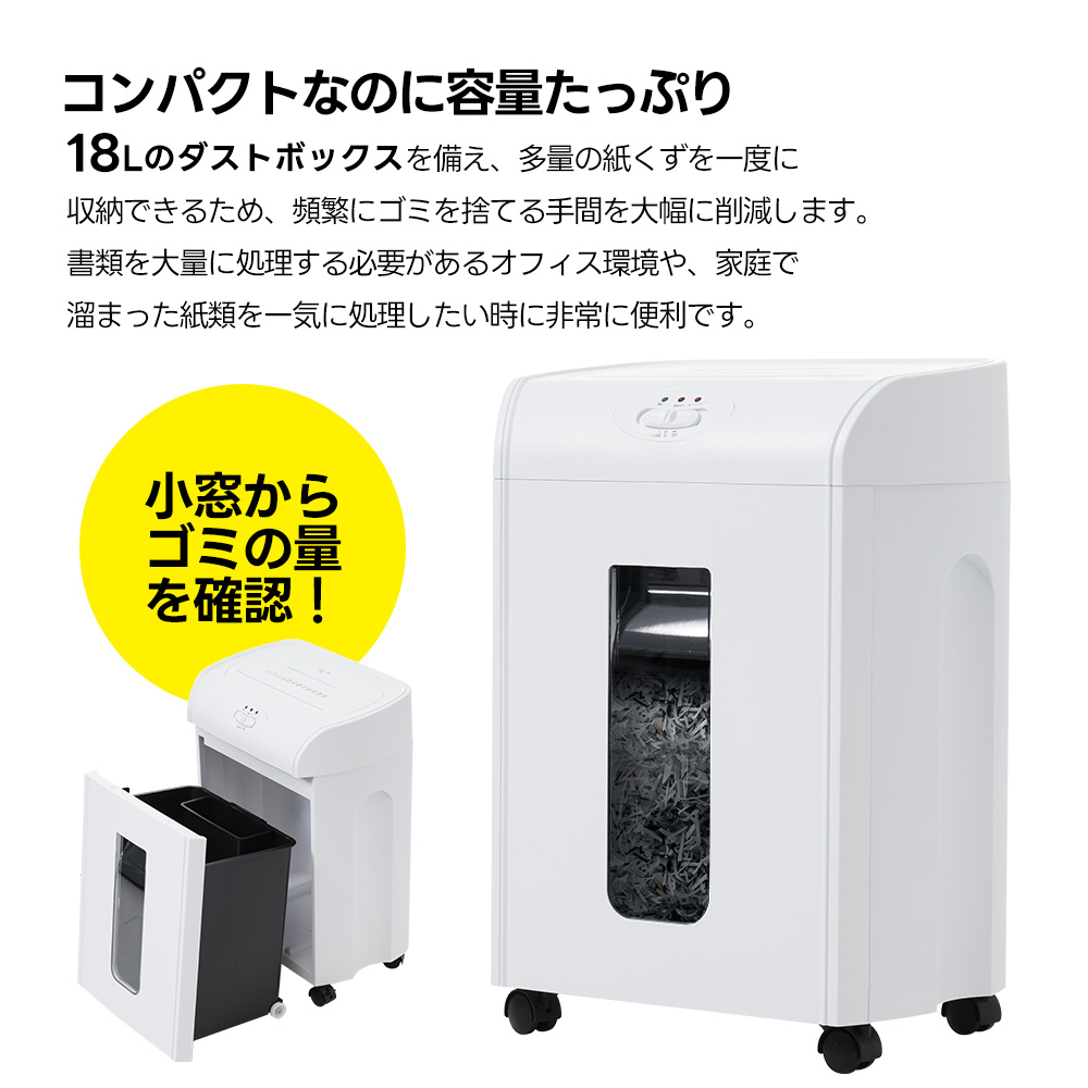 シュレッダー 18L 家庭用 業務用 電動 コンパクト 静音 家用 A410枚同時切断 CD カード対応 マイクロカット シュレッダー機 書類整理 個人情報 超静音 8分連続使用 White ABS
