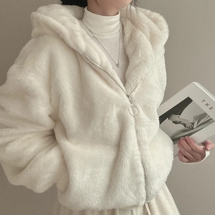 毛皮アウター 厚手 保温 パーカー ジャケット ふわふわ ロングコート 暖かい 毛皮コート ぬいぐるみ モコモコ ヘビロテ ボア ゆったり 体型カバー 韓国ファッション