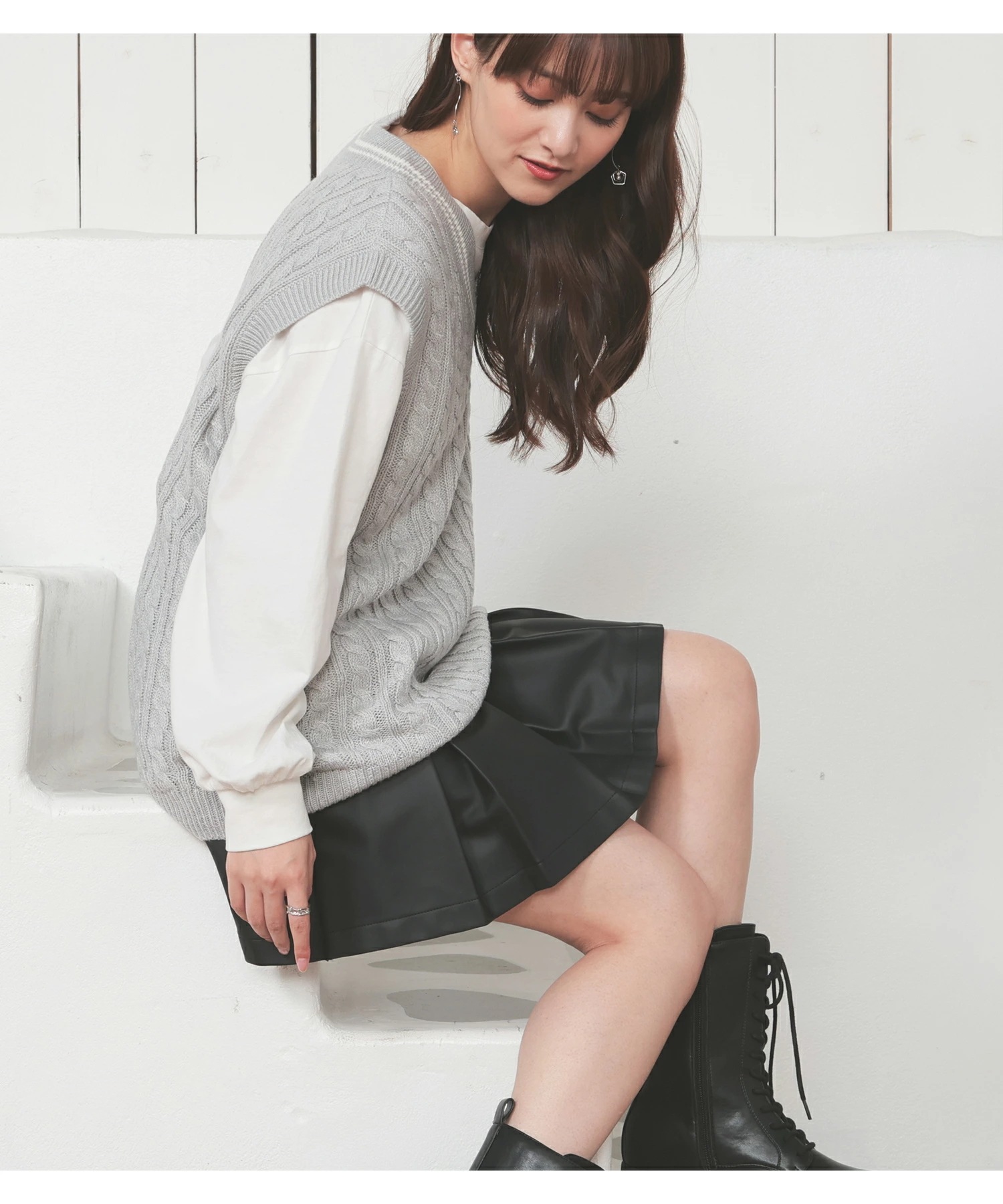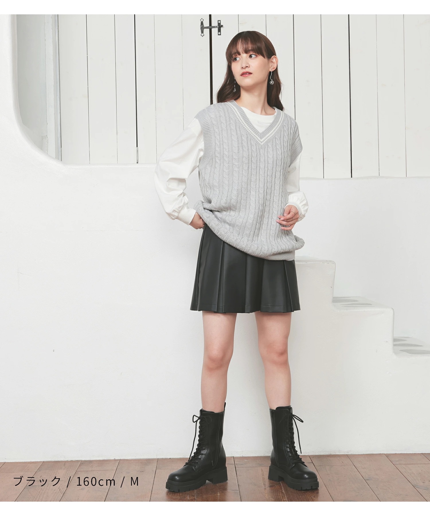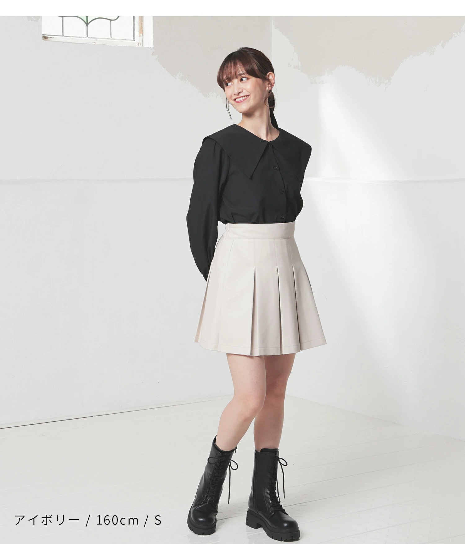 Honeys 合皮ミニプリーツスカート ボトムス スカート ミニスカート ミニ丈 プリーツスカート ミディアムスカート
