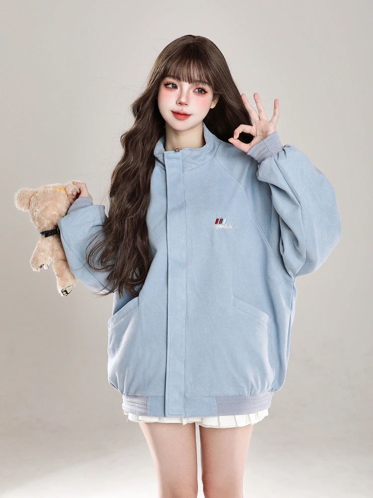 2024秋冬韓国かわいいレディースアウターブルゾンお出かけ長袖セクシーベースシルエットトップスサイド冬カジュアルファッションサイズお出かけネックフル丈スリーブトラック