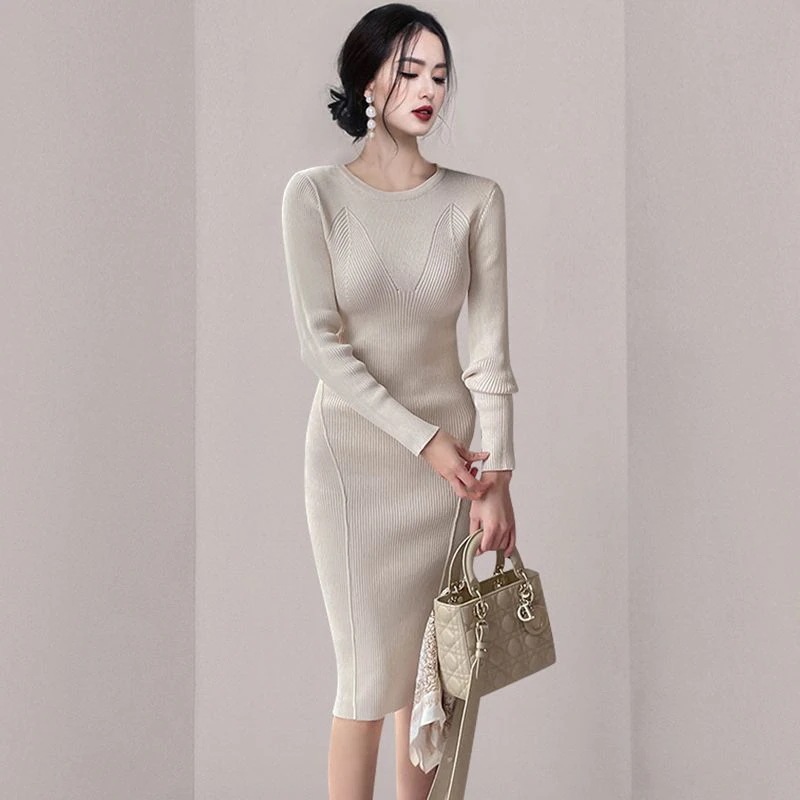 冬のワンピース エレガント フレンチヴィンテージ スリミング 着痩せ 高級感 気質 OL通勤 ニッ ニットワンピ