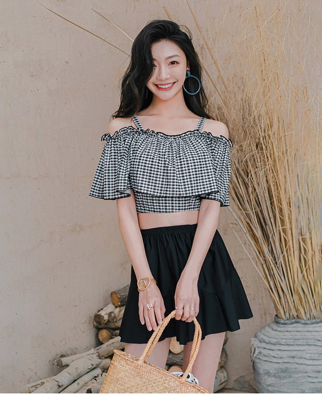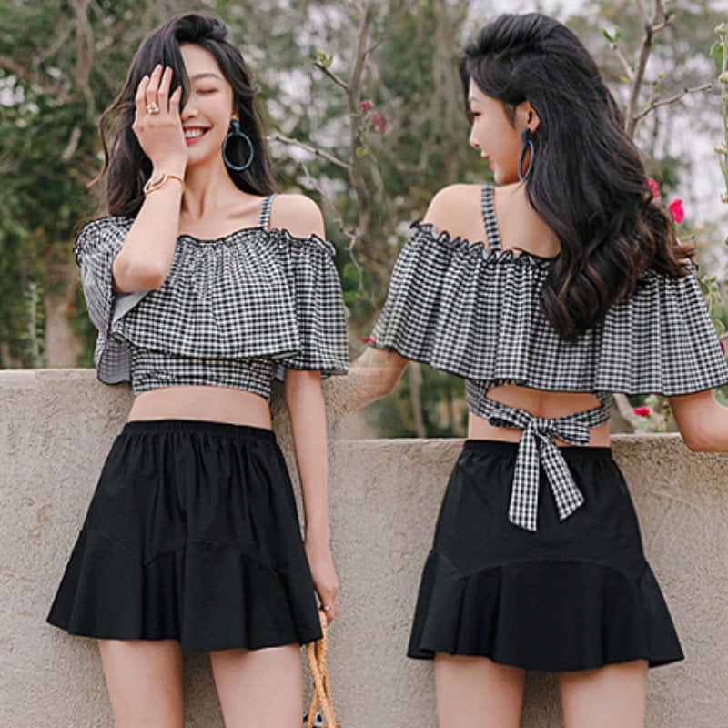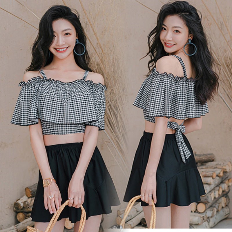 水着 レディース 2点セット セパレート 体型カバー パッド付き 中学生 高校生 UVカット 海水浴 潜水 海ビーチ 韓国風 可愛い 温泉
