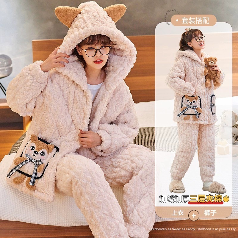 パジャマ ホームウェアスリープウェア 女性 秋と冬 ホームウェアセット パジャマ