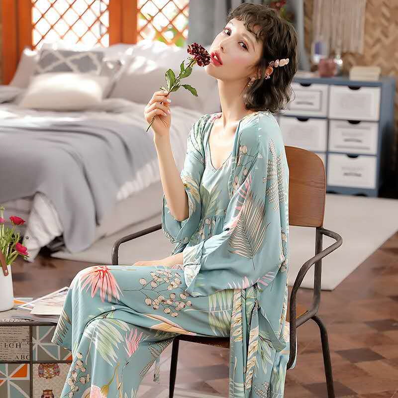 無料 シアーシャツ韓国 新作 三点セット日式 キュートルームウェア キャミソール 長袖 夏服 花柄ルームウェア レディース ナイトウェア セットアップ