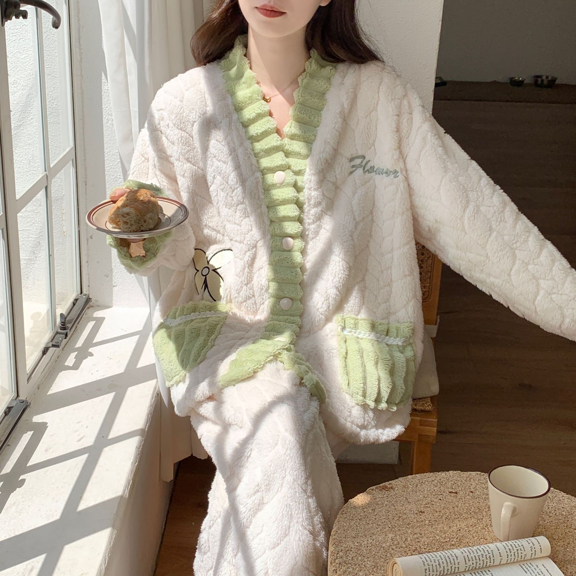パジャマ ホームウェアスリープウェア 女性の冬 暖かい ホームウェアスーツ パジャマ