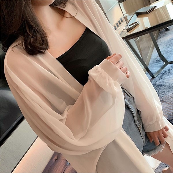 シアーシャツ 日焼け対策 冷房対策 羽織 透け感 レディース 日焼け止め シフォン ブラウス 長袖 トップス ロングシャツ 前開きシャツ 重ね着 オーバーサイズ シースルー シンプル 夏物 春 夏