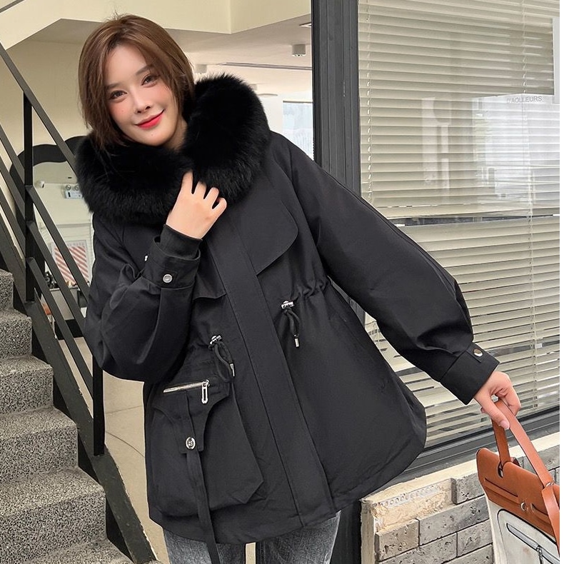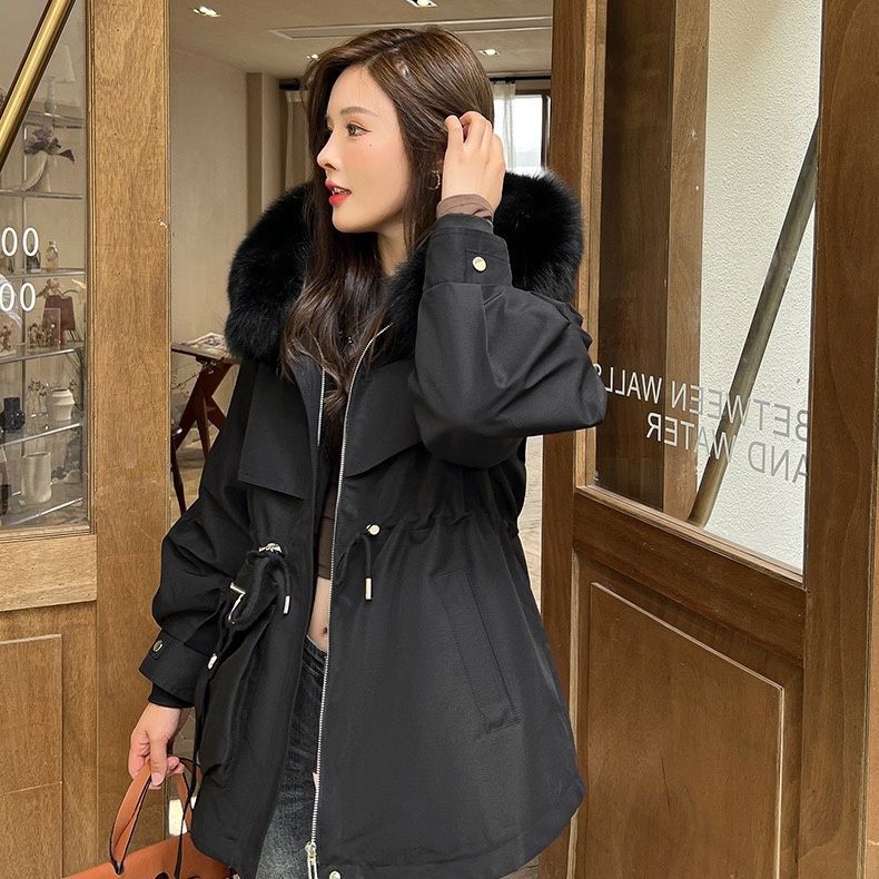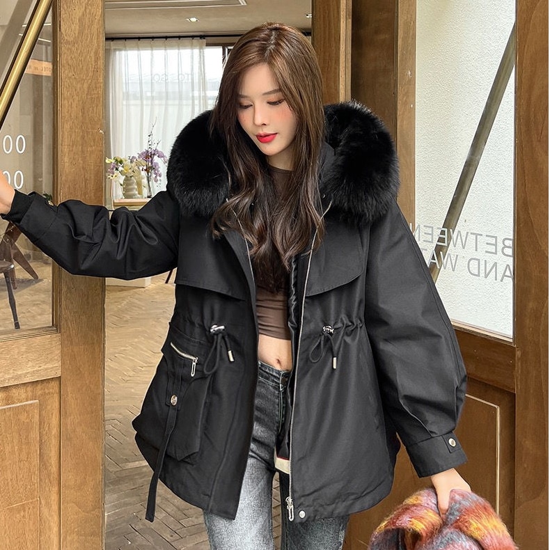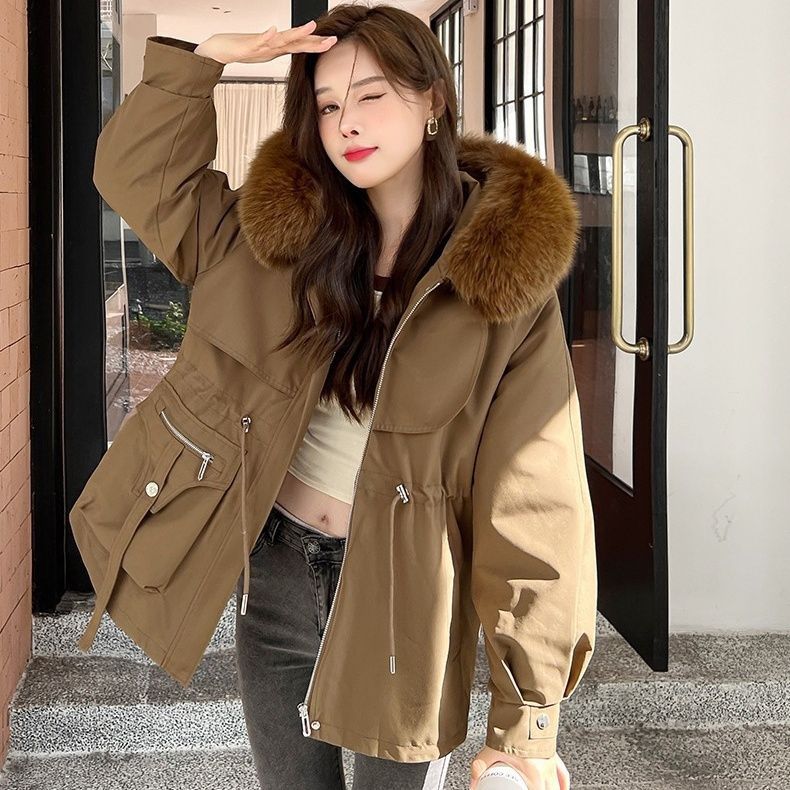 韓国 秋冬アウター ダウンジャケット ファーコートショートフード付き ダウン ジャケット暖かいウエスト引き締めコート厚手 裹起毛キルティング 通勤大きいサイズレディースファッション