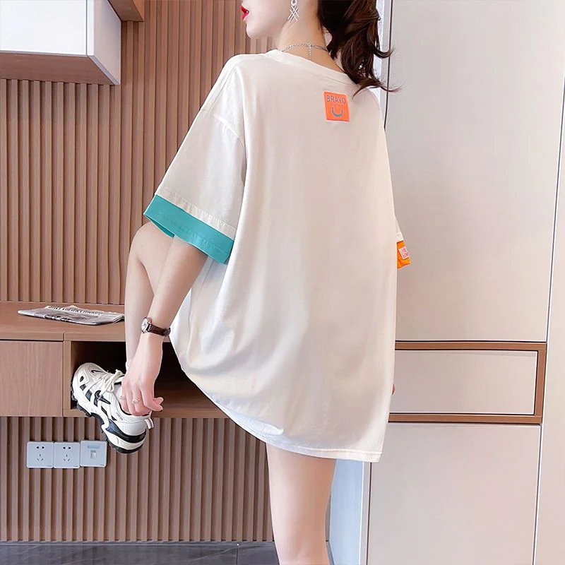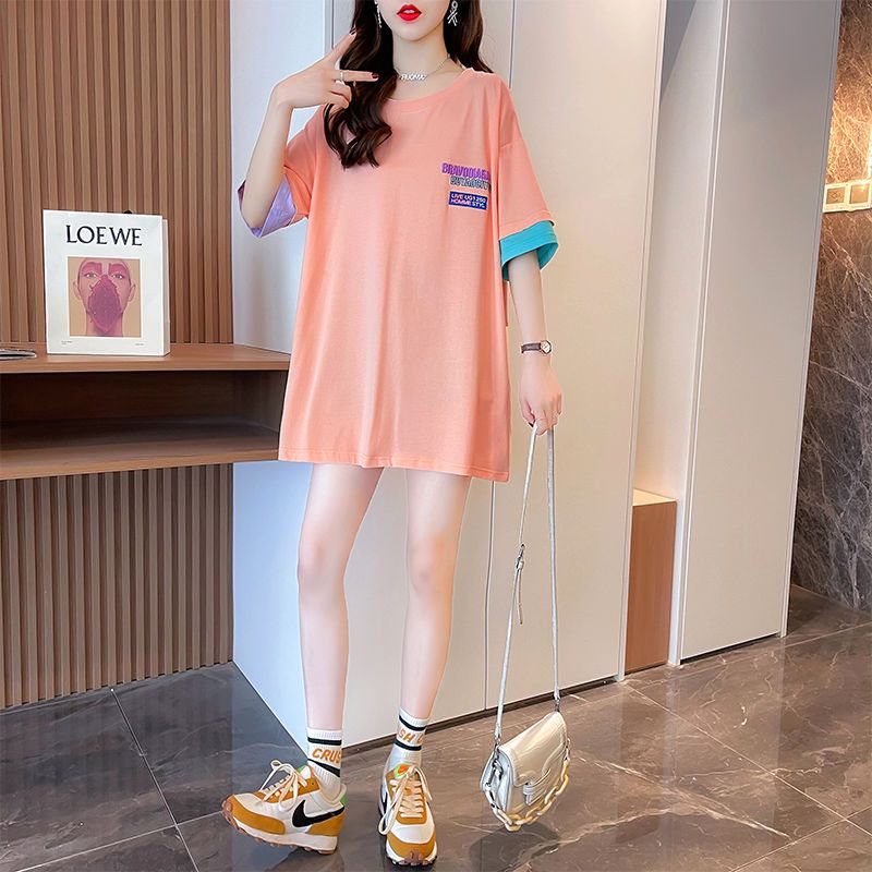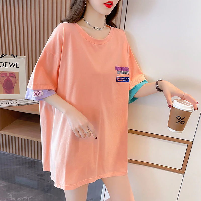 Tシャツカットソー Tシャツ夏半袖 ブラウス オーバーサイズ体型カバーゆったり無地 tシャツ 半袖 レディース クルーネック 韓国ファッション トップス