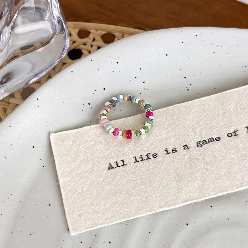 韓国の新型カラービーズ砕銀指輪女性百合甘い手飾り小衆デザイン感ファッション弾力指輪 指輪