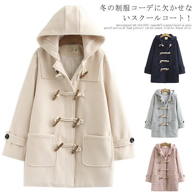 ダッフルコート レディース 通学 アウター 制服 スクールウェア フェイクウール 中綿 スクールコート 軽い ロングコート ミディアム丈 フード付 あったか 暖かい 学生服 女子 高校生 中学生 通学