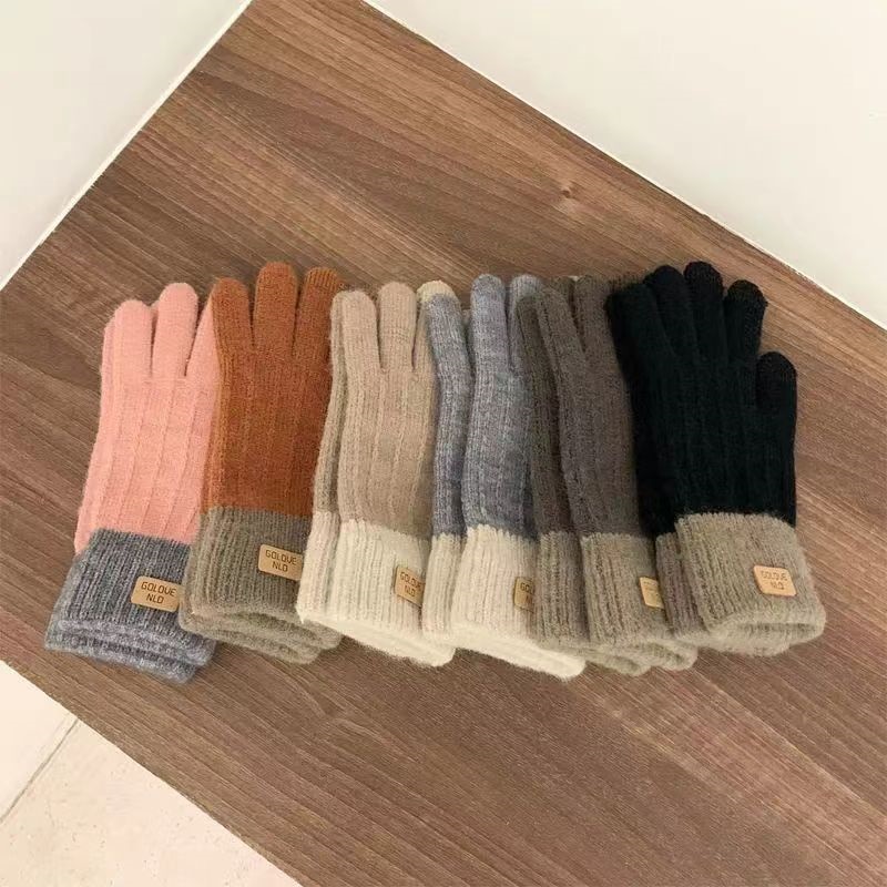 ins手袋女性秋冬ダウン厚手防寒保温学生ニット手袋五本騎行タッチ手袋 ニット手袋
