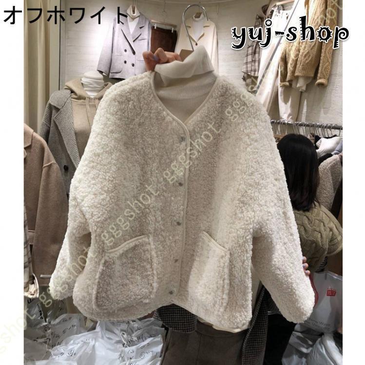 人気沸騰新柄追加 ボア ブルゾン レディース ボアジャケット 大きいサイズ 秋 冬 ボア ノーカラー アウター コート ファー もこもこ 防寒 大人 ショート丈 フリースジャケット
