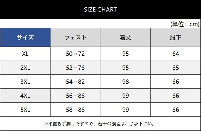 size: XL(日本M相当) 2XL(日本L相当) 3XL(日本XL相当) 4XL(日本2XL相当) 5XL(日本3XL相当)