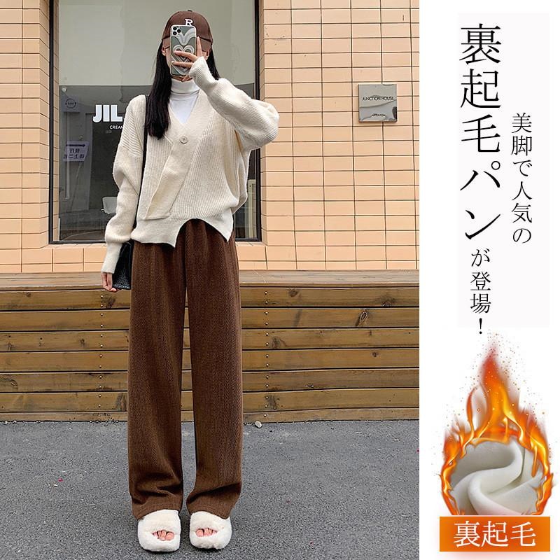 ワイドパンツ レディース ロングパンツ 裏起毛 ボア 秋冬 ガウチョパンツ ボトムス ウエストゴム カジュアル 体型カバー ゆったり ロングパンツ