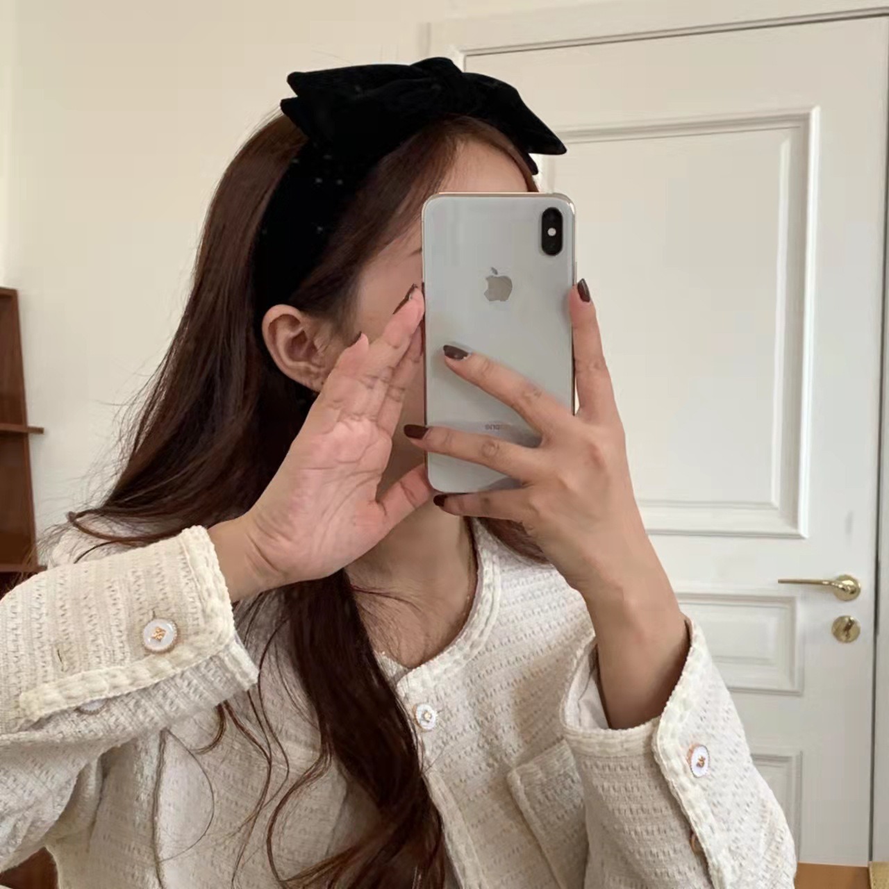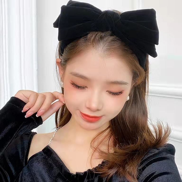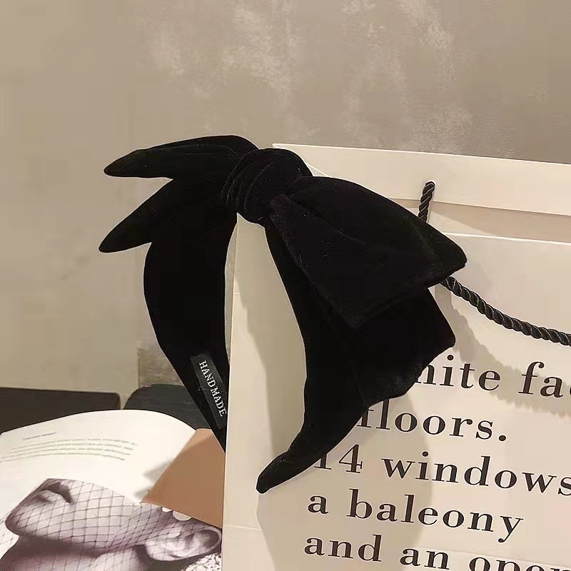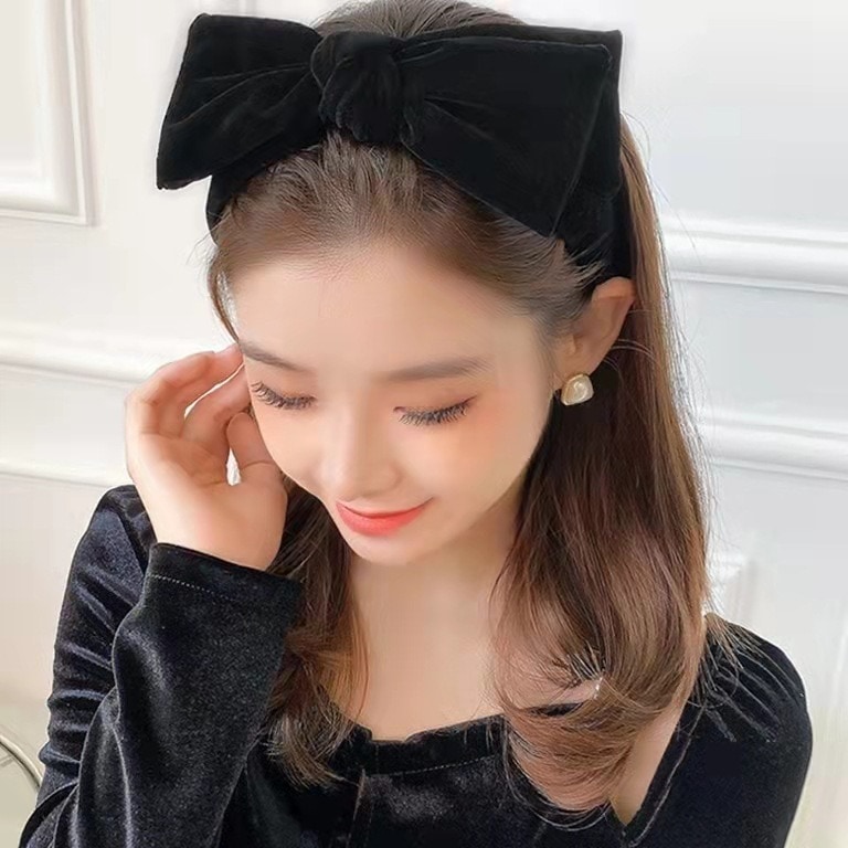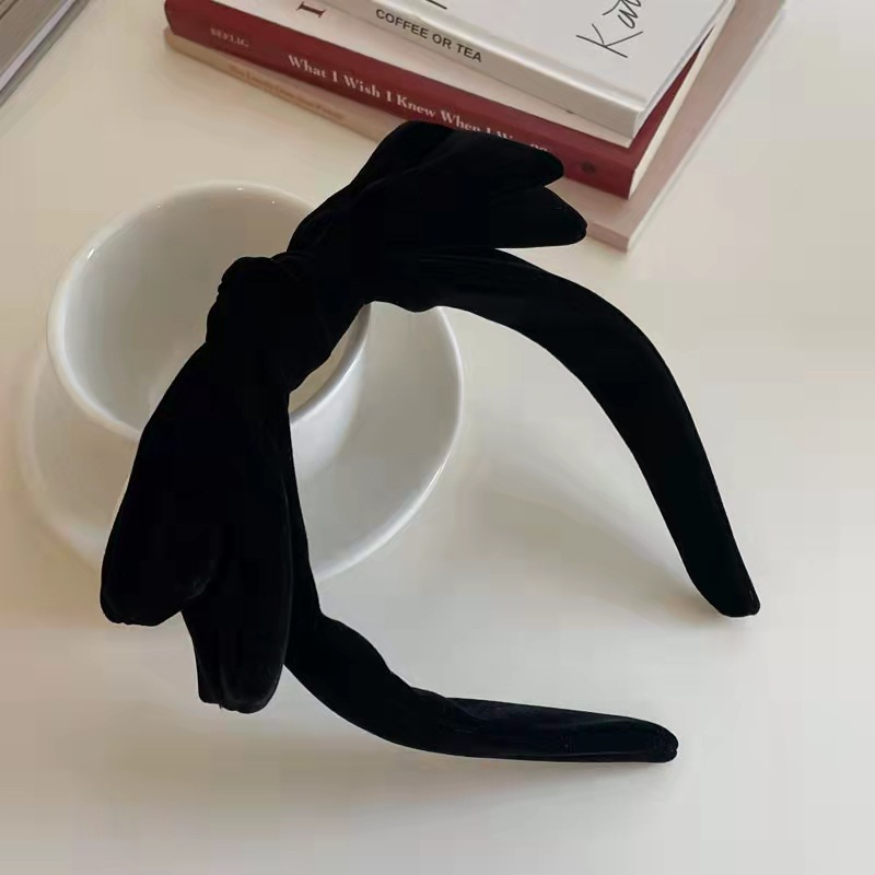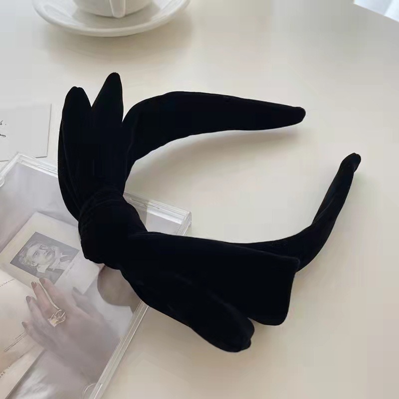 リボンカチューシャ ベロアリボン ヘアバンド カチューシャ ヘアアクセサリー ベロア ベルベット 秋 冬 冬小物 韓国 レディース フリーサイズ 小顔 可愛い キュート ラブリー フェミニン ブラック