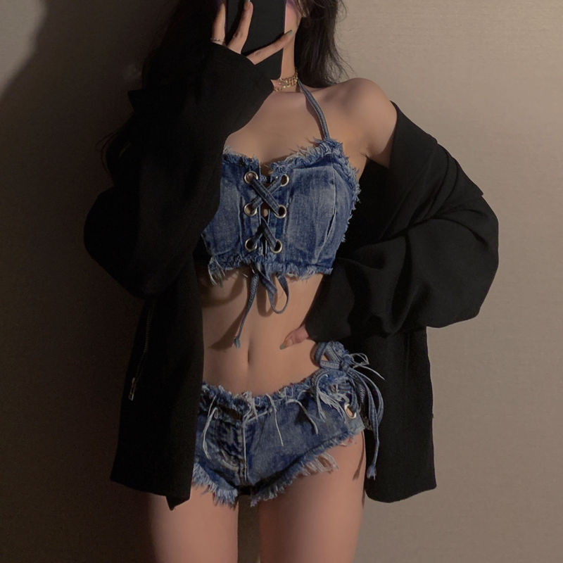 欧米 ギャル セクシー デニム ビキニ 2点セット レディース 砂浜 休暇 バンド 分体 水着 ビキニ