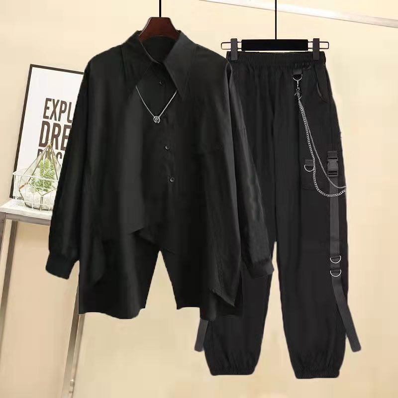 涼しく楽ちんセットアップ 地雷系 男女兼用 韓国メンズファッション 長袖シャツ+パンツ スポーツウェア レディース 大きいサイズ 2点セットスウェット