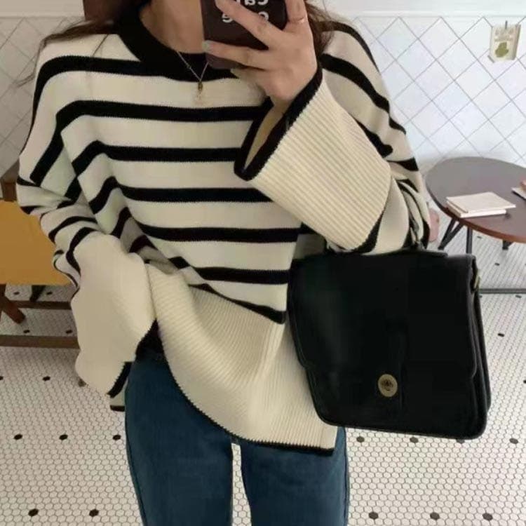 セーター ニット プルオーバー 春 長袖 ボーダー クルーネック 長そで トップス ボーダー レディース ニットウェア ニットプルオーバー チクチクしない オーバーサイズ 大きめ ゆったり 体型カバー