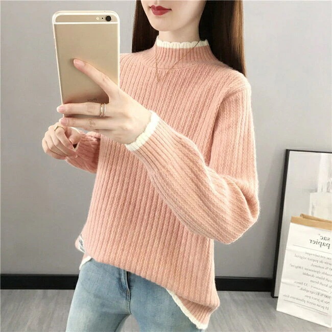 ニット レディース セーター ハイネック 長袖 リブニット きれいめ トップス 洗える ニットアップ tシャツ シンプル 秋冬 ニット