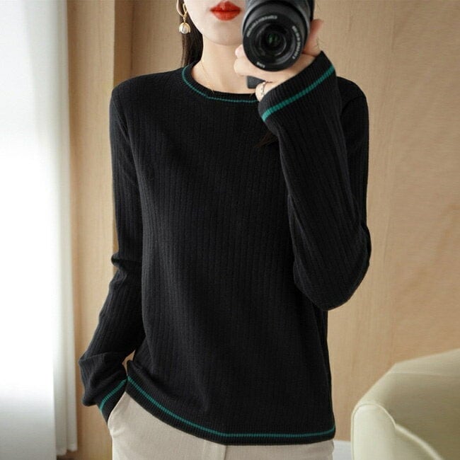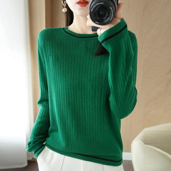 ニット レディース セーター リブニット クルーネック きれいめ トップス 洗える ニットアップ tシャツ シンプル 秋冬 ニット