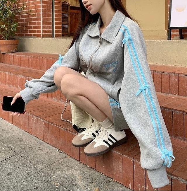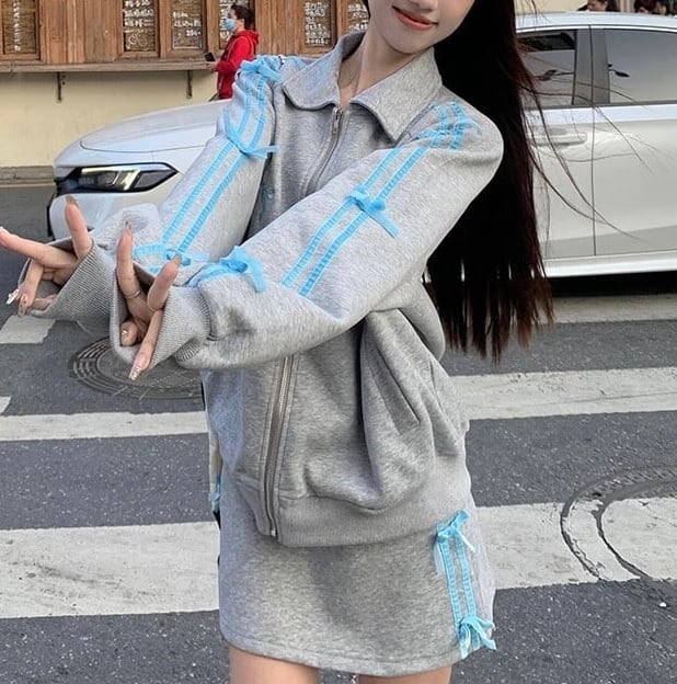 韓国系ins純欲少女感蝶ネクタイスポーツ風ガードルコート ジャンパー ブルゾン