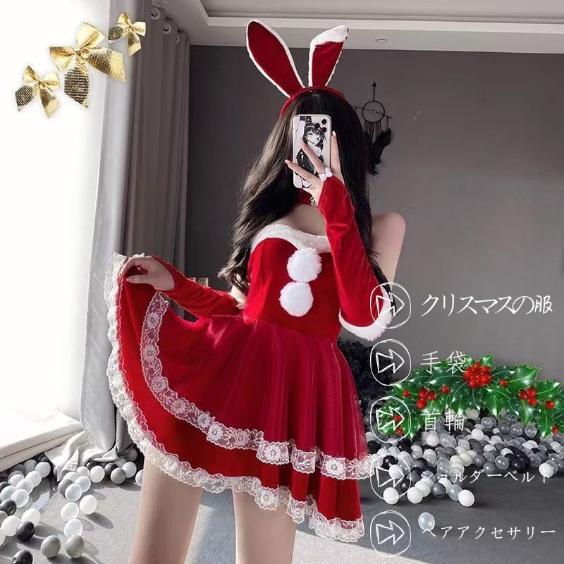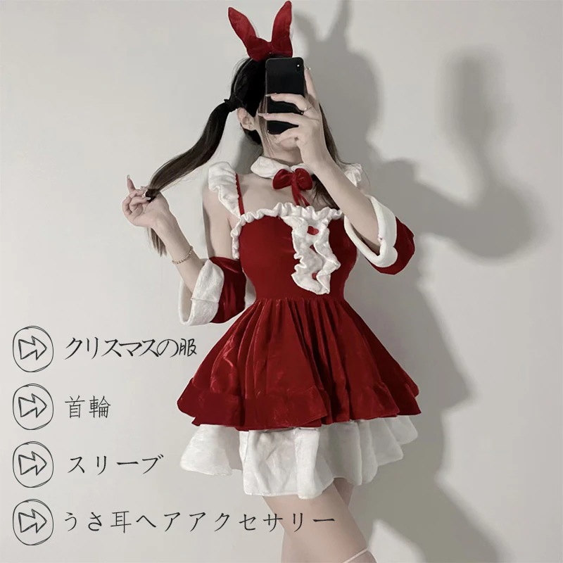 急速出荷 品質保証 客様満足度高 2024ins人気の新作サンタコスプレクリスマスコスプレ ハロウィン コスプレ レディース コスチュームクリスマスうさ耳ワンピース サンタコスプレ