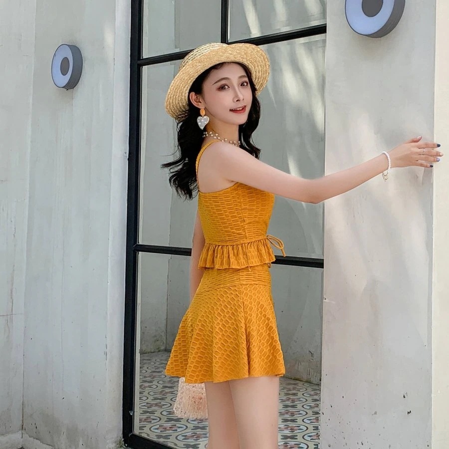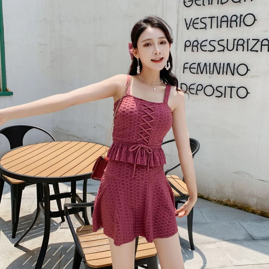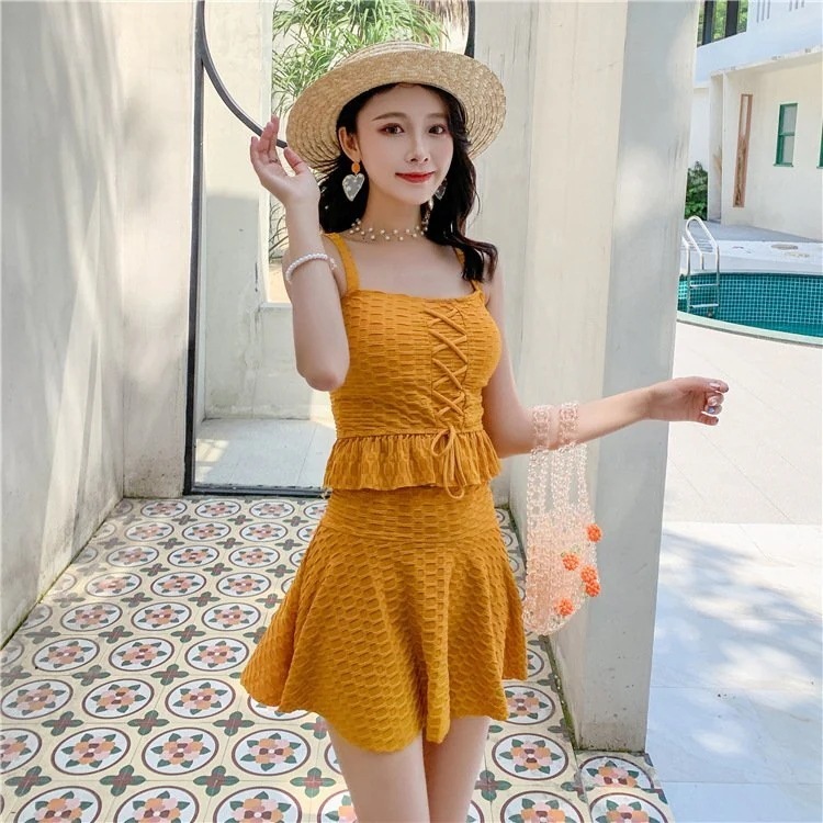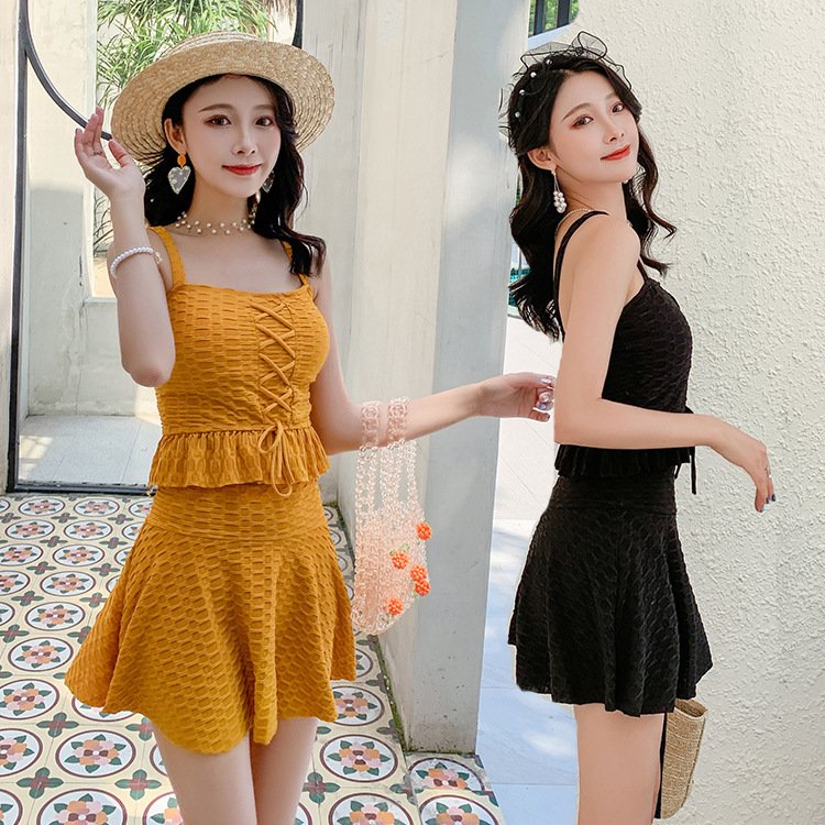 水着 レディース 体型カバー タンキニ ブラ ショーツ フリルスカート 2点セット トップス 半袖 ワンピース水着