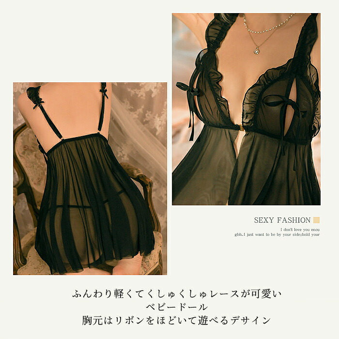セクシーランジェリー 超過激 ベビードール リボンが可愛い セクシー リボン 穴あき オープンブラ フレア スリップ セクシー 下着 股割れ オープンクロッチ エッチな下着 大胆 過激 レデ
