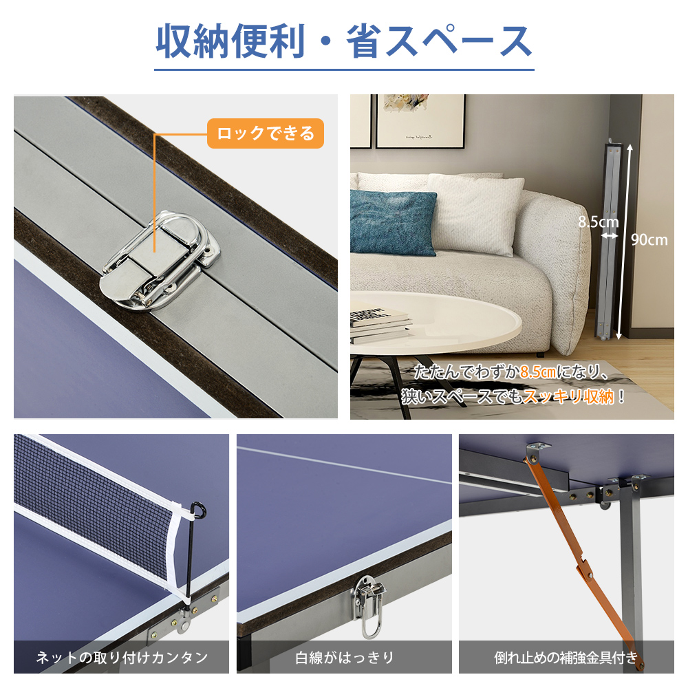 卓球台 折りたたみ ネット付 ラケット付 ピンポン球付 家庭用 Blue POLYETHYLENE