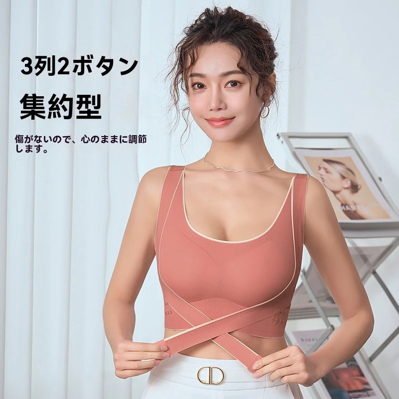 大きな胸を小さく見せる シームレスブラノンワイヤー 脇肉ブラジャー 下着 ブラトップ 超薄型バストアップ 着痩せ 脇高でしっかり補正