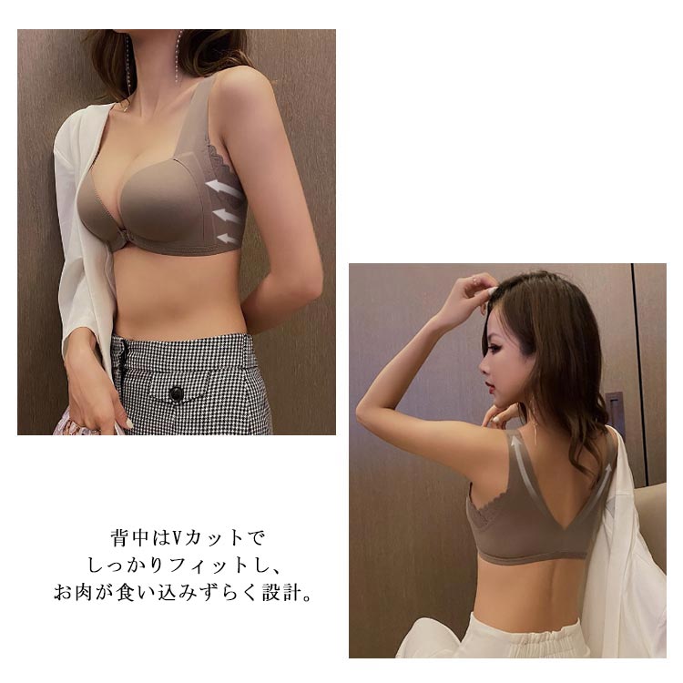 フロントホック前開きブラノンワイヤーインナー下着前ホックシームレスノンワイヤーブラ単品盛れる小胸脇高ワイヤレスブラ補正ブラブラジャー ブラジャー