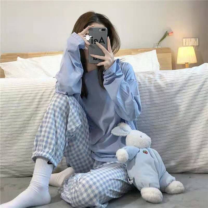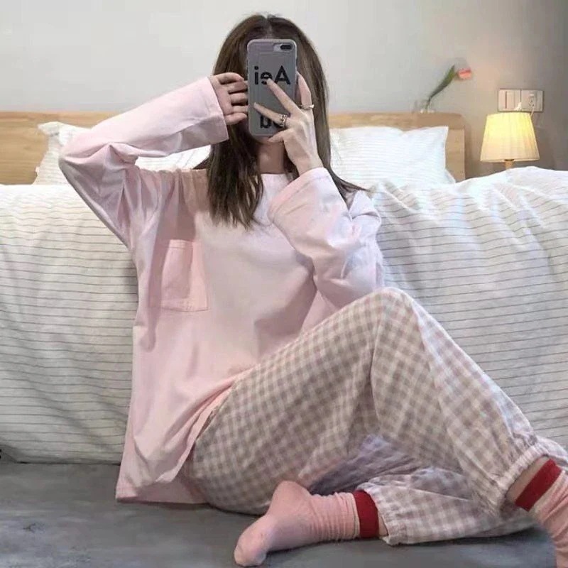 秋新作 パジャマ レディース 韓国ファッション 可愛い チェック 大きいサイズ 長袖 ルームウェア ins 学生 ナイトウェア 柔らかい 快適 部屋着 春秋セットアップ 上下セット