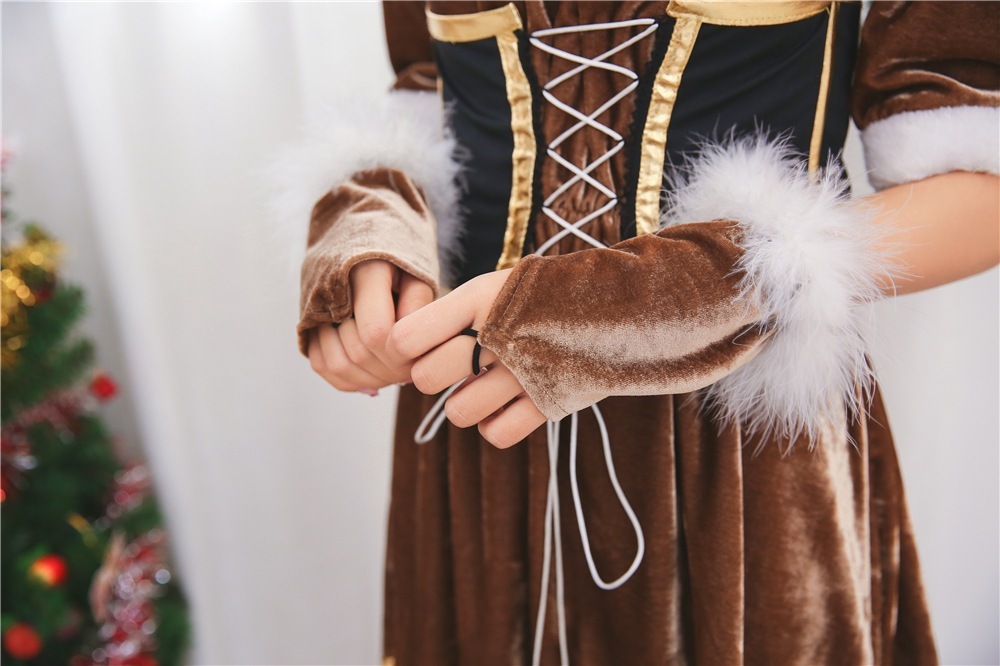 クリスマス衣装ワンピース トナカイ 新品 サンタ コスプレ 鹿 5点セットワンピース+首飾り+カチ ハロウィン