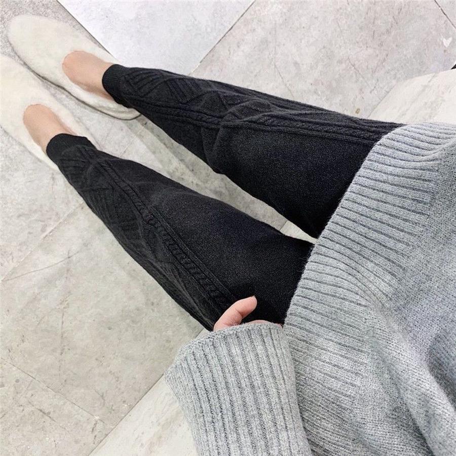 かっこいい スラックスパンツワイドパンツデニムパンツ 脚長効果 スキニーパンツ脚長効果 スキニーパンツ韓国ファッション ニットパンツ 秋冬 ストレッチ ツイスト ハイウエスト ゆったり ハーレムパンツ