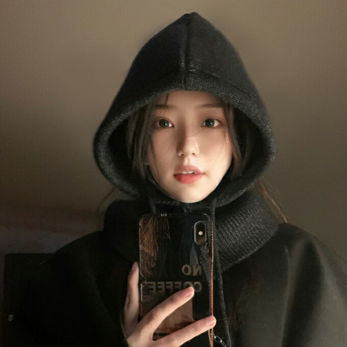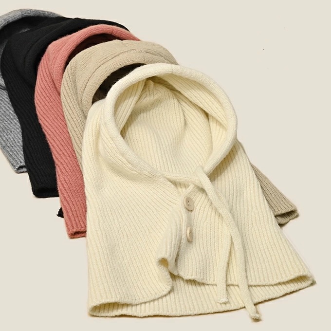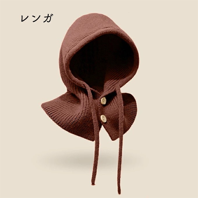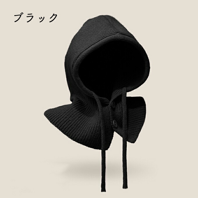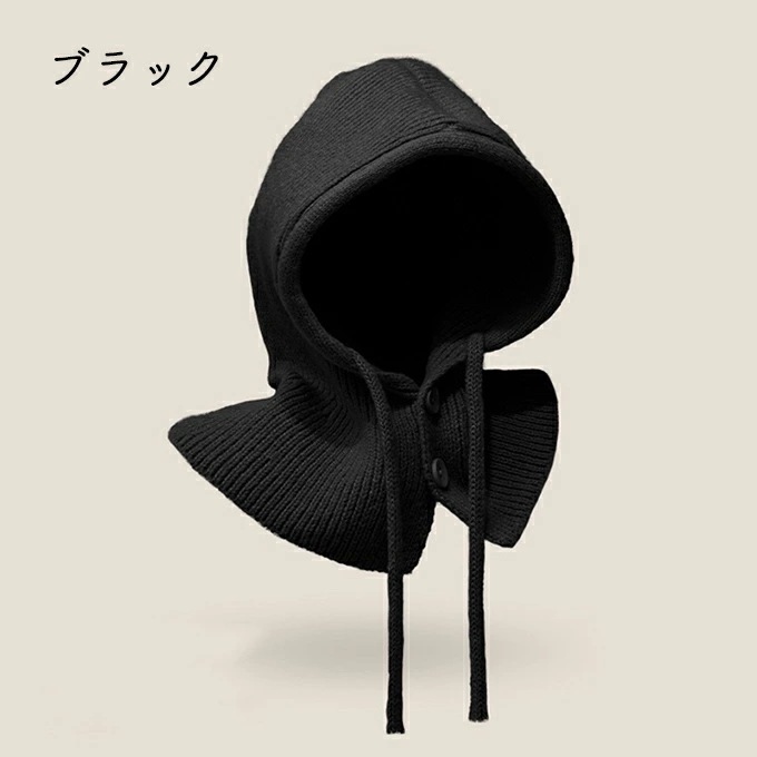 バラクラバ レディース 2way 冬 フードウォーマー ネックウォーマー あったか 帽子 マフラー 付けフード ニット 無地 防寒 フード 紐 ボタン 調節 スキー スノーボード グレー