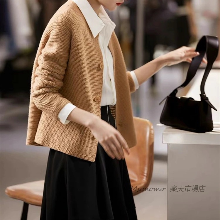 カジュアル 長袖セーター ニットカーディガン 大人ニットアウター ゆったりプルオーバー オシャレ韓国風 無地カーディガン ショット丈セーター 50代 40代 秋冬 30代 レディース