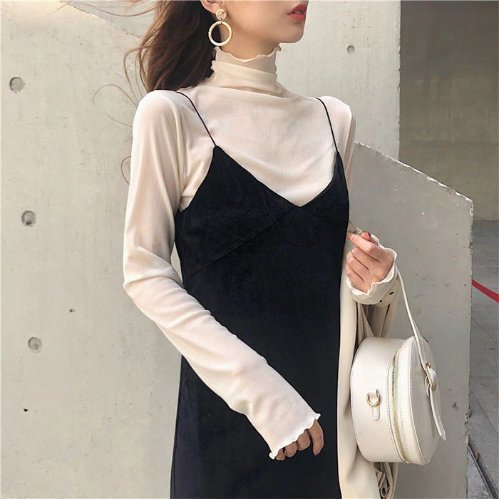 シアー タートルネック プルオーバー ハイネック レイヤード シアートップス メロウフリル カットソー シースルー トップス ブラウス インナー 透け感 薄手 重ね着 無地 春 夏 10代 20代
